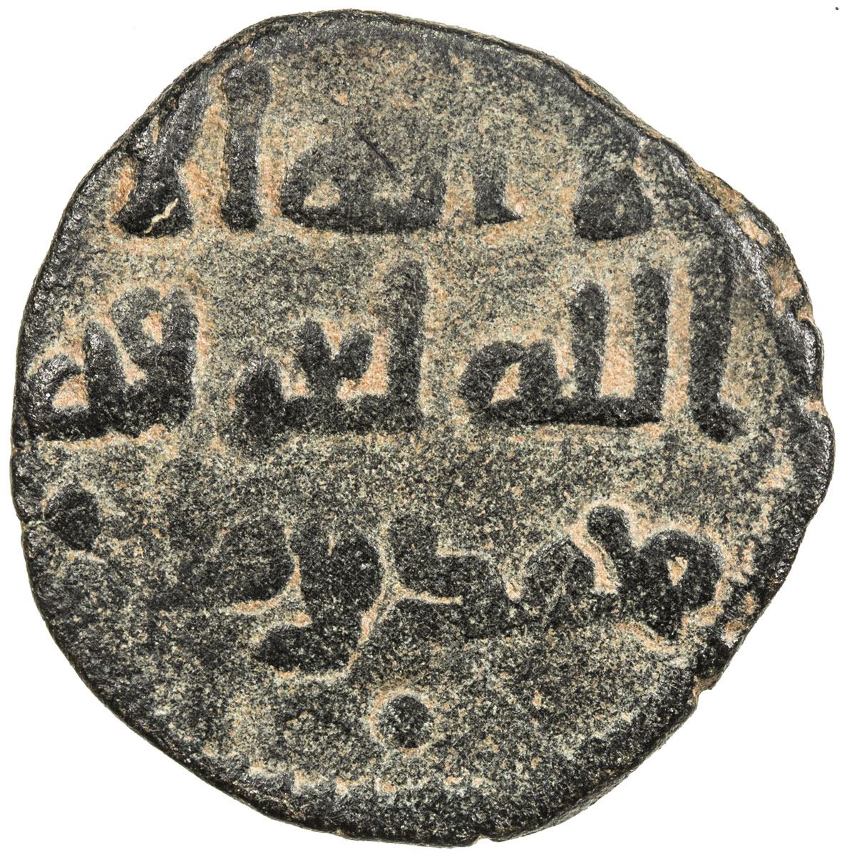 ABBASID: AE fals (1.81g), 'Irqa, ND, A-A288, in the names of Muhammad b. Malik & Humayd b. Yahya, neatly cast, circa AH130s-180s, nice patination, VF, RRR. Very rare mint in Lebanon, operated only in the Abbasid period for a few very rare copper fulus. A similar example sold in Stephen Album Auction 29, Lot 207, for $600.