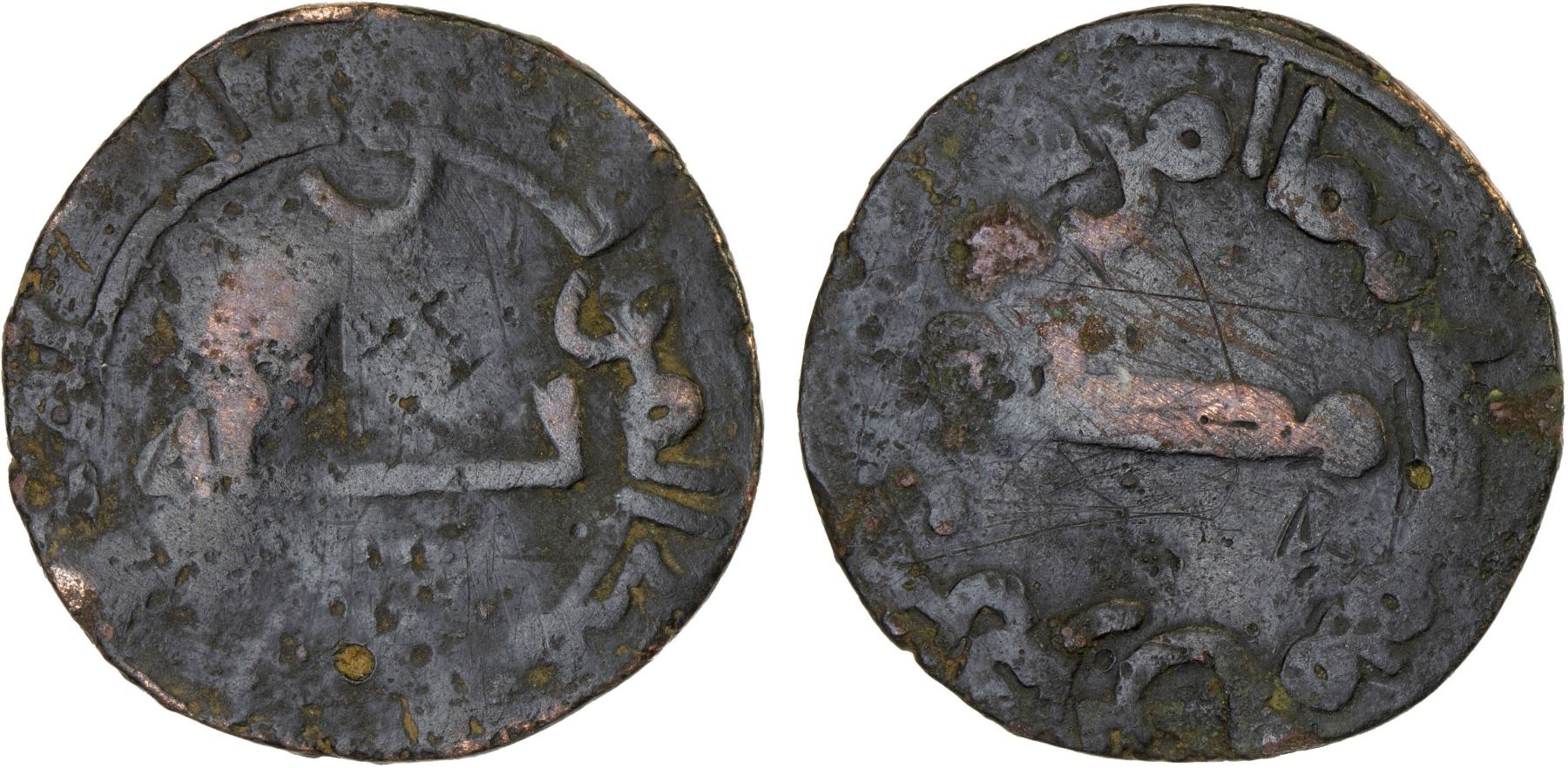 ABBASID: AE fals (2.59g), Makka, ND, A-M300, lillah in the center, citing the heir apparent al-Muwaffaq in the margin // the mint Makka (Mecca in Saudi Arabia) in the center, with the governor Harun b. Muhammad in the margin; unpublished and unique, Fine, RRRR. Though the attribution seemed at first tentative, it makes sense because Harun b. Muhammad was the Abbasid governor of Makka (AH268-271) during the eastern heirship of al-Muwaffaq (AH260-273), who is also cited on dinars of San'a struck AH263-274 together with his son Ahmad (AH274-278).
