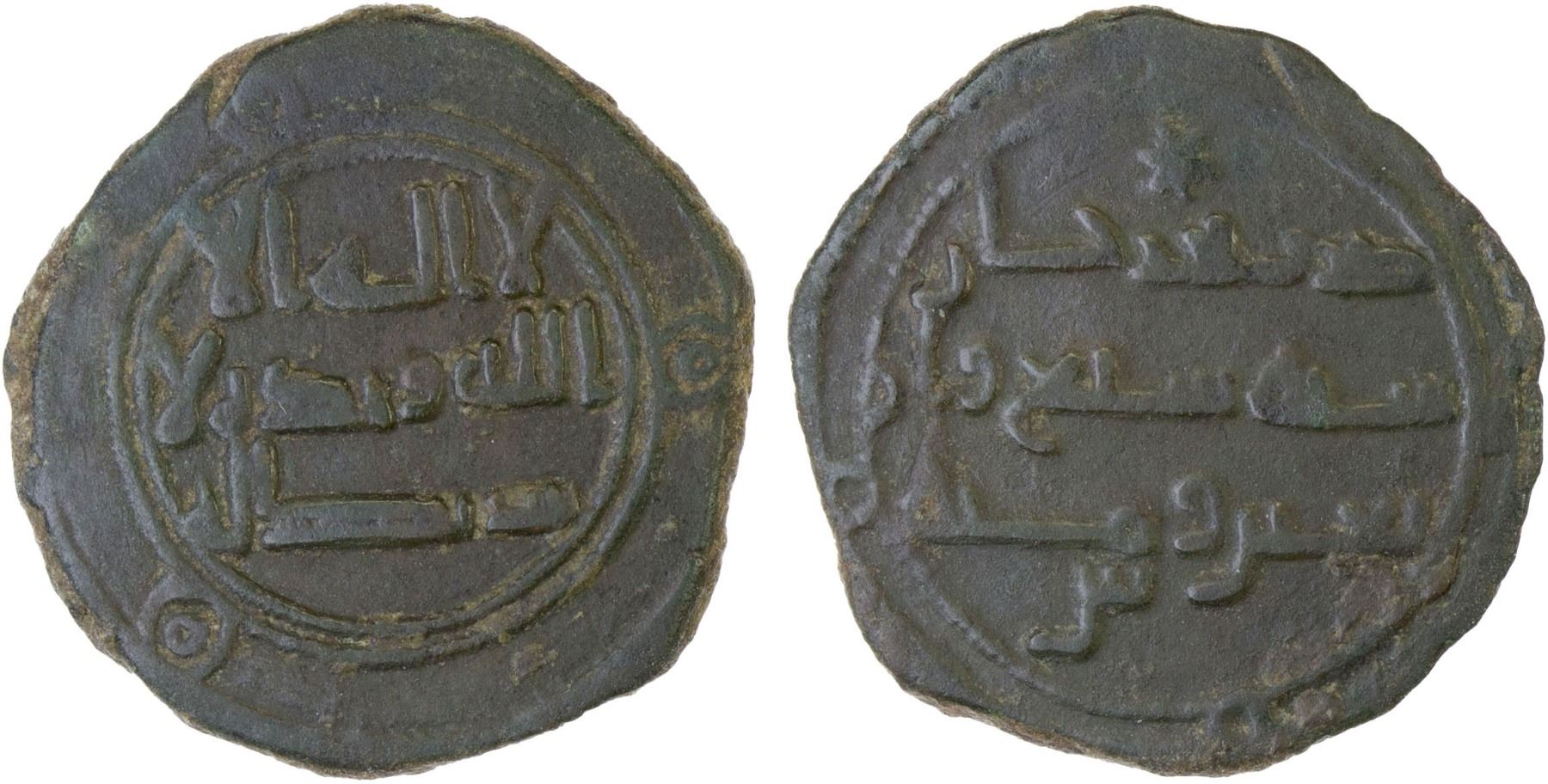 ABBASID: AE fals (2.80g), Jurjan, AH147, A-327, kalma // date in words in the field; totally anonymous, without any marginal legends, VF-XF, RR.