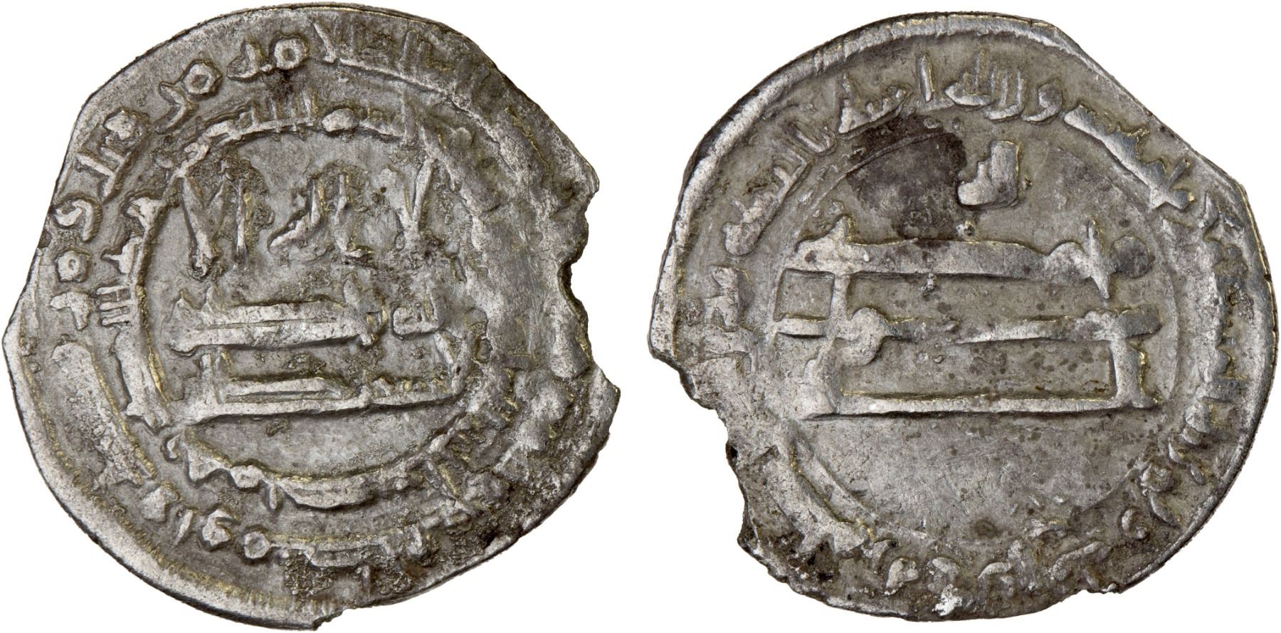 ABBASID OF YEMEN: al-Ma'mun, 813-833, AR dirham (0.83g), San'a, AH208, A-1050Q, anonymous, and without the word thulth ("third") below the reverse field; one tiny chip, full mint name and sufficiently clear date, VF, RRR.