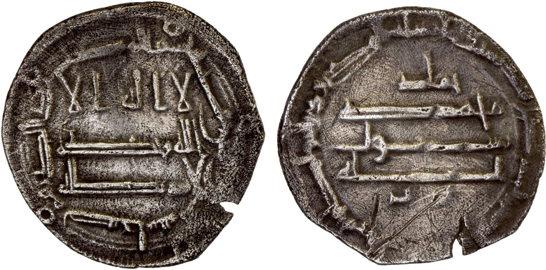 ABBASID OF YEMEN: al-Rashid, 786-809, AR Yemeni dirham (1.17g), San'a, AH185, A-1048.2, citing Hammâd b. Barbar; date very weak, but confirm by die-link to the obverse of the AH185 example sold in our Auction 42, lot 1892, with clear date 185, VF, RR.
