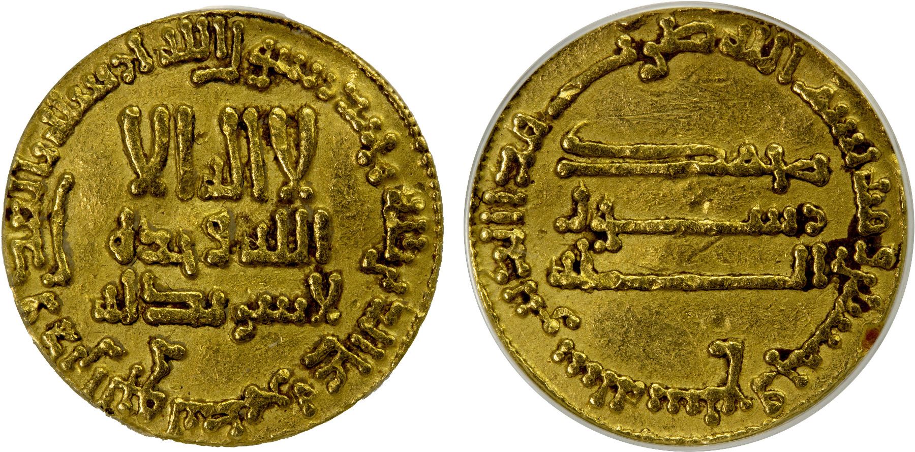 ABBASID: al-Mansur, 754-775, AV dinar (4.21g), NM, AH157, A-212, bold date, not noted on the slab, ANACS graded EF40.