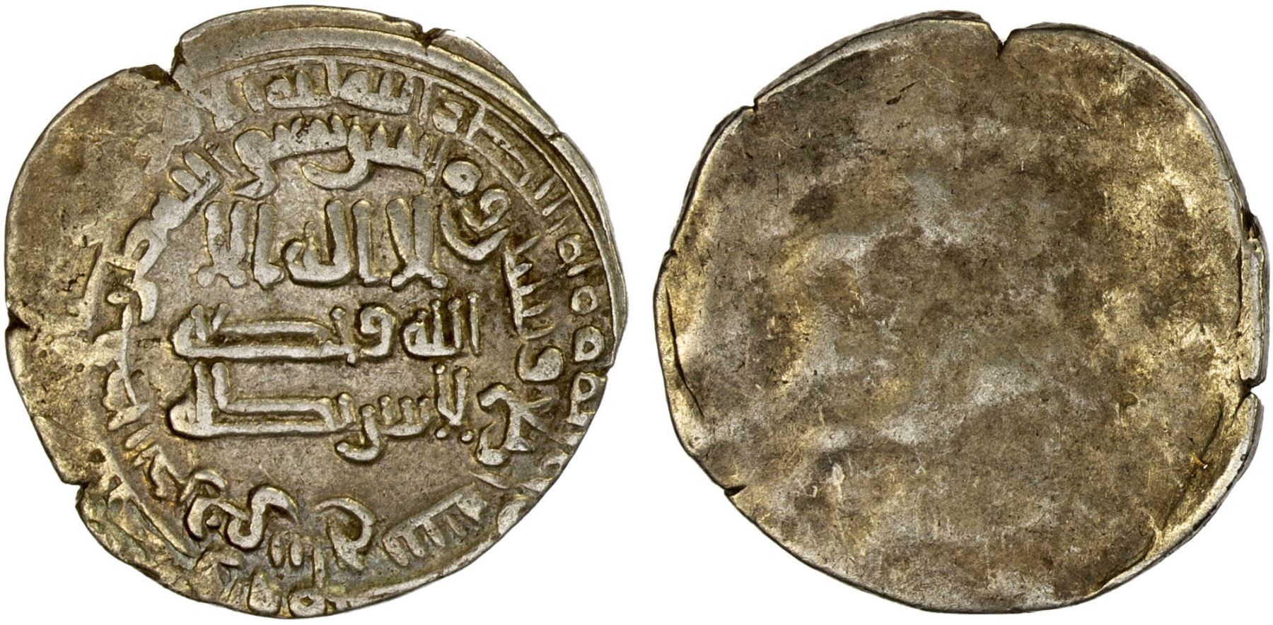 ABBASID: al-Mu'tamid, 870-892, AR dirham brockage (2.83g), Balkh, AH264, A-240, Balkh was essentially inactive AH210-282, which very few confirmed coins in this period; this is a brockage of the obverse, with legible mint & date, bold VF, RRR. The only Balkh coins of the AH260s are dirhams dated AH263, both purely Abbasid (1 known) and Banijurid (2 known), no other dates in the 260s. It is conceivable that the missing reverse also cited the Banijurid Muhammad b. Ahmad.