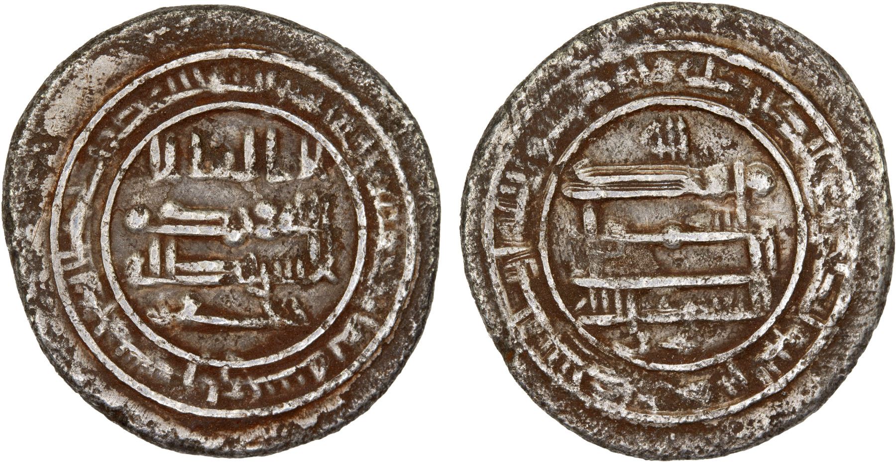 ABBASID: al-Mu'tamid, 870-892, AR donative dirham (2.42g), Surra man Ra'a, AH258, A-240A, narrow design, as on the previous donatives of the caliph al-Mutawakkil from the same mint; some light corrosion in the blank outer rims, F-VF, RRR. A similar example, also of Surra man Ra'a AH258 but holed and with some other flaws, was sold in our Auction 25, lot 349, in 2016.