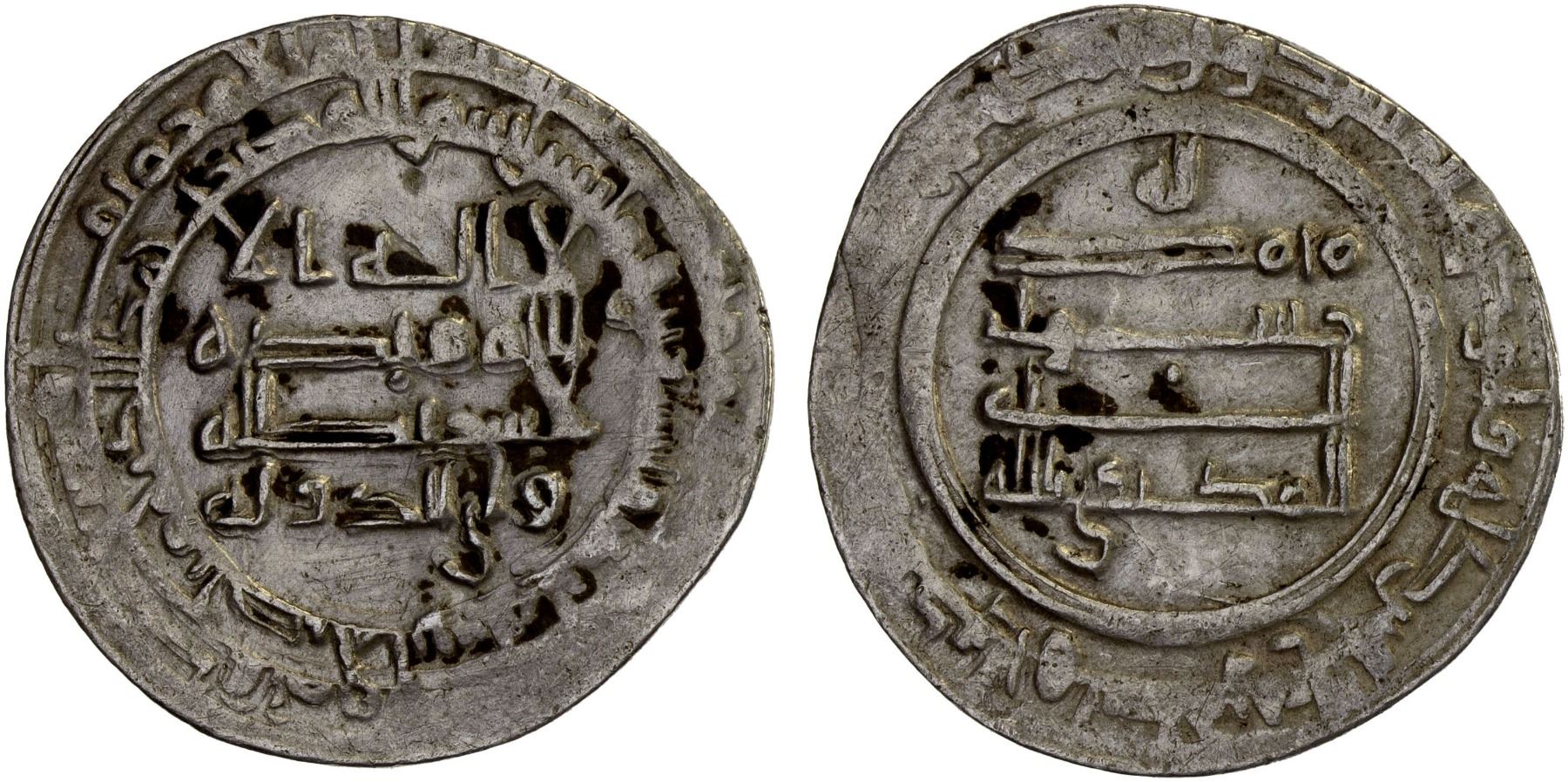 ABBASID: al-Muktafi, 902-908, AR dirham (3.02g), Isbahan, AH291, A-244.2, citing the vizier Wali al-Dawla below the obverse field, VF-XF.