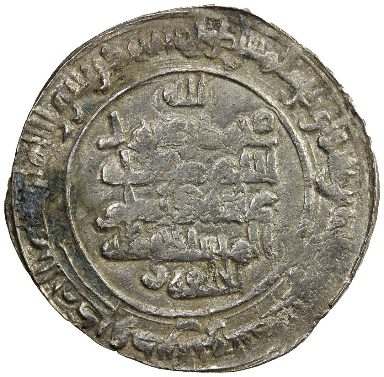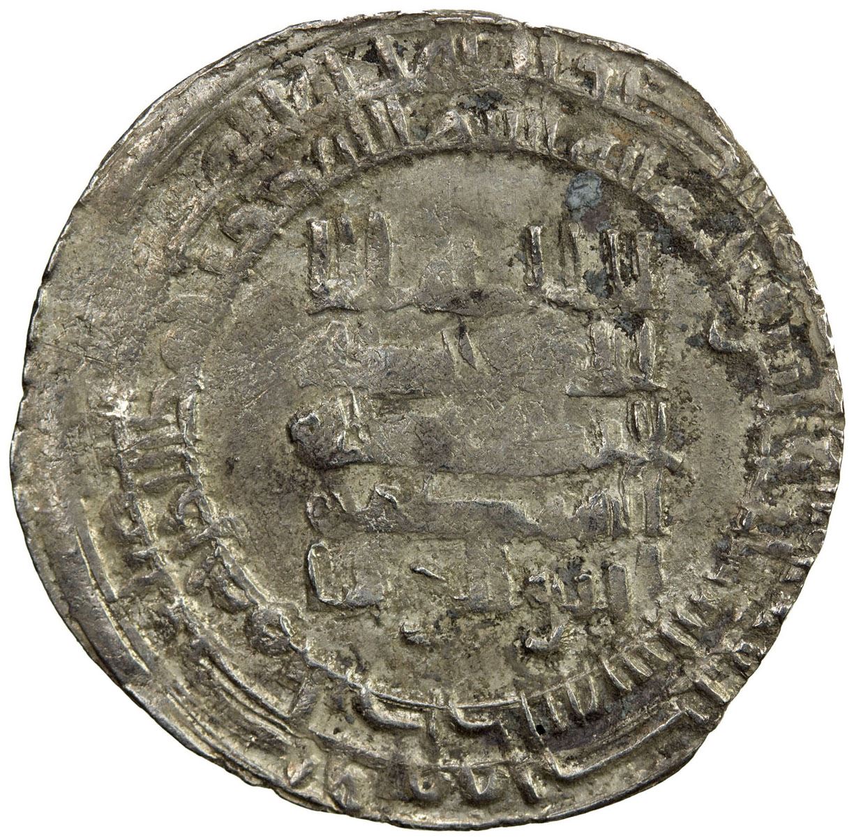 ABBASID: al-Mustakfi, 944-946, AR dirham (2.81g), Antakiya, AH333, A-264, with his name abu'l-wafa and without the heir, some light adhesions (removable), VF, RR.