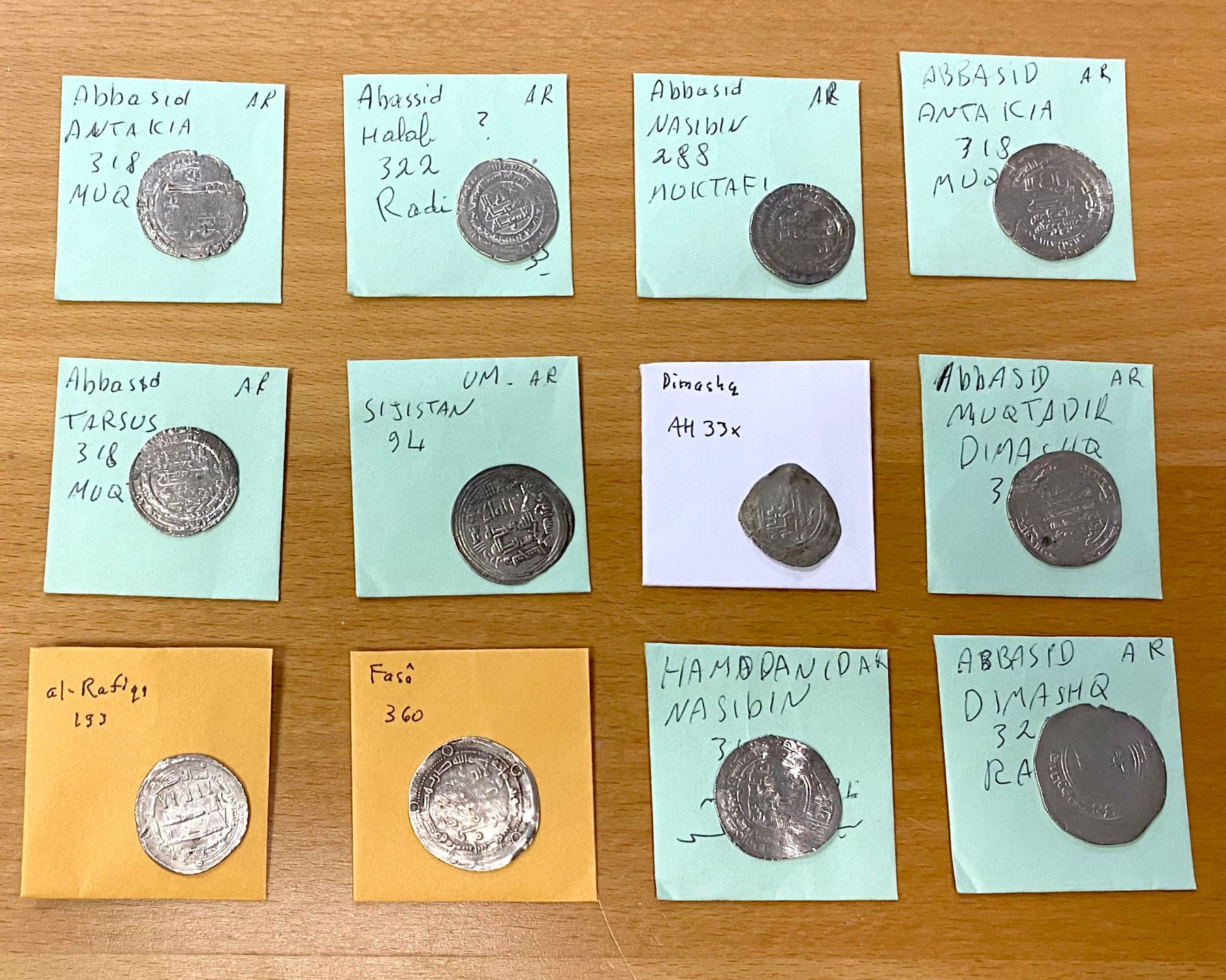 ABBASID & successors: LOT of 12 rare silver dirhams, Abbasid: Antakiya AH318 (2 pcs), Dimashq 313 and 322, al-Rafiqa 193 (al-Rashid), Halab 322 (al-Radi), Nasibin 288, and Tarsus 318; Umayyad: Sijistan 94; Buwayhid: Fasa 360; Ikhshidid, Dimashq AH33x; and Hamdanid: Nasibin 349; VG to VF condition, but all with considerable weakness or other flaws; retail value $650, lot of 12 pieces.