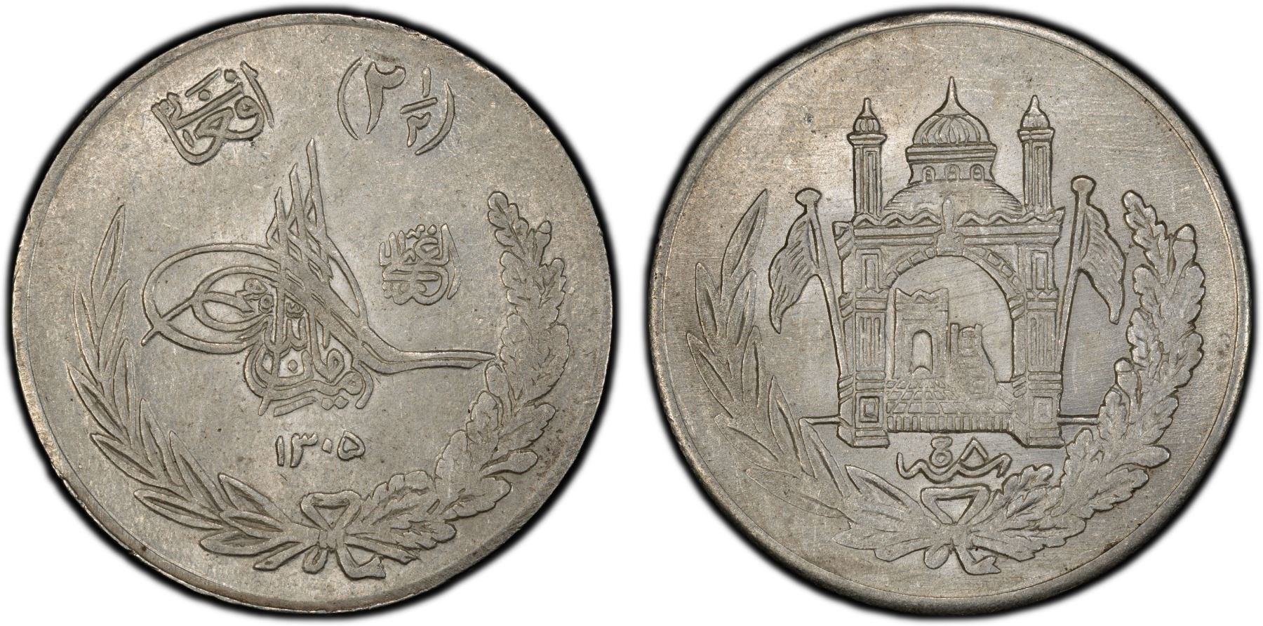 AFGHANISTAN: Amanullah, 1919-1929, AR 2½ afghanis, SH1305 year 8, PCGS MS63