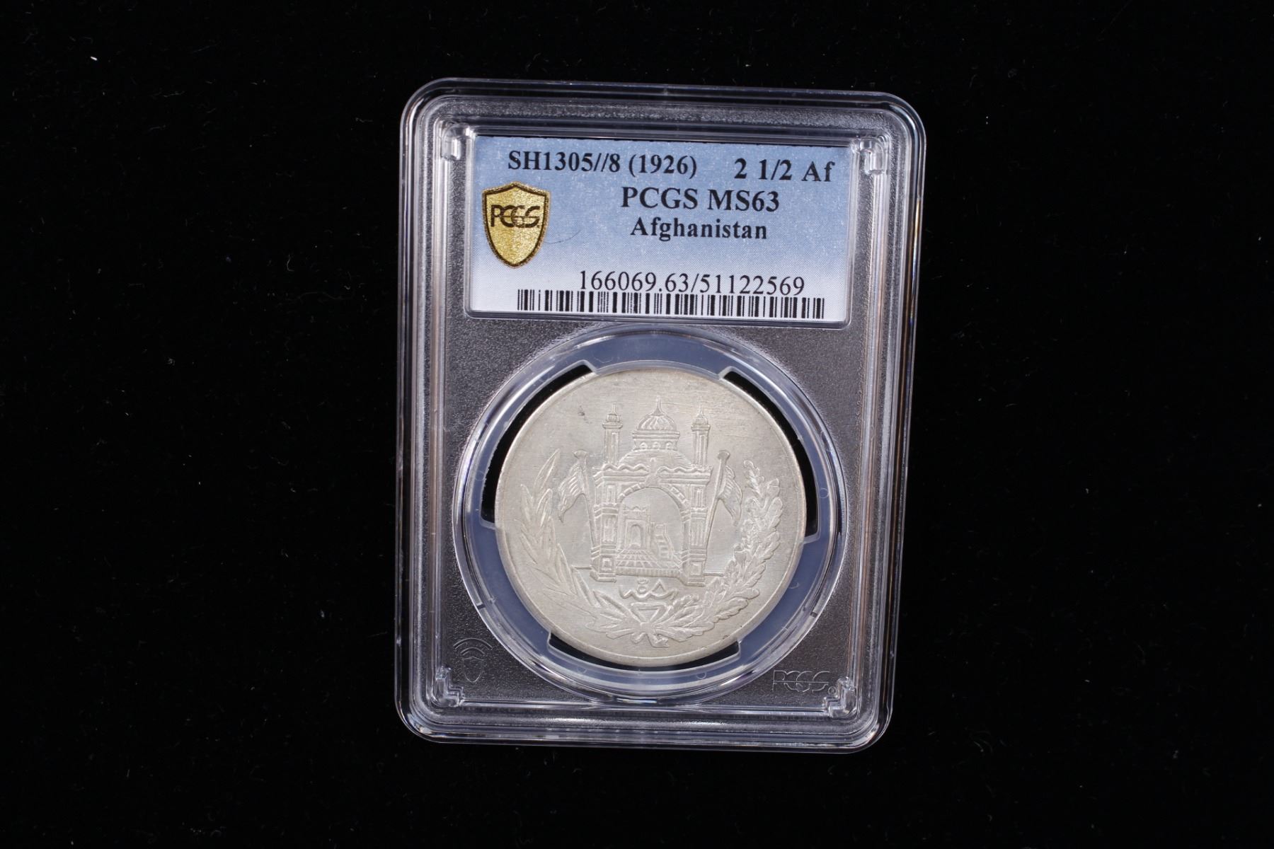 AFGHANISTAN: Amanullah, 1919-1929, AR 2½ afghanis, SH1305 year 8, KM-913, a lovely mint state example! PCGS graded MS63. The sole finest graded example at PCGS (Top Pop).