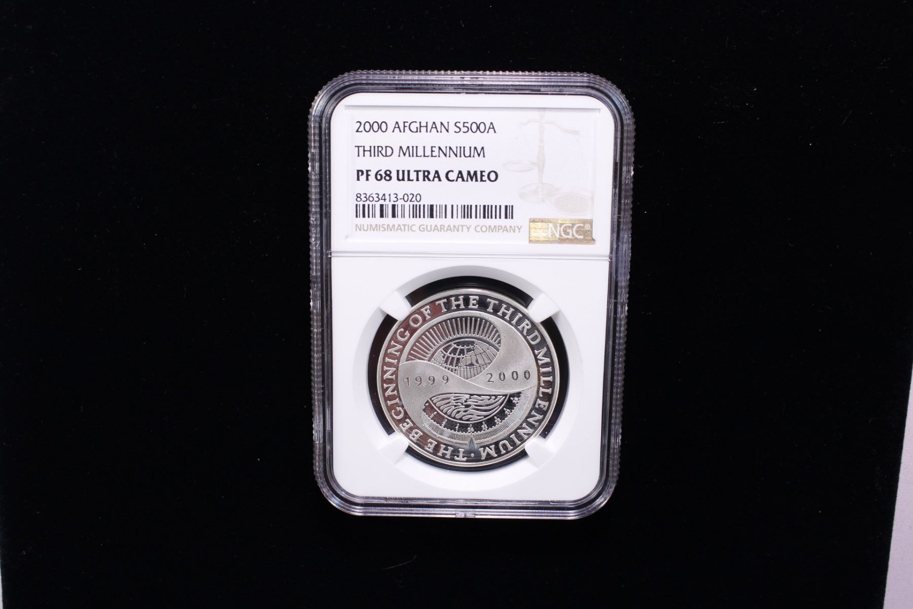 AFGHANISTAN: Islamic State, AR 500 afghanis, 2000, KM-1041, Millennium of the Gregorian calendar, struck at the Havana mint, Cuba, NGC graded PF68 Ultra Cameo.