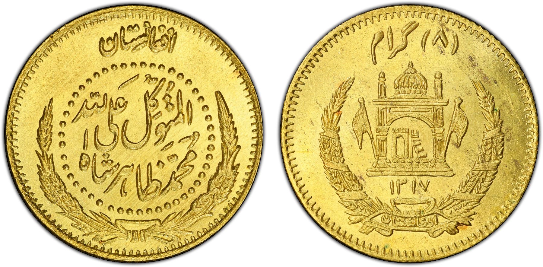 AFGHANISTAN: Muhammad Zahir Shah, 1933-1973, AV 8 grams, SH1317 (1938), KM-934, a wonderful lustrous mint-state example! PCGS graded MS64, ex Hakim Hamidi Collection.