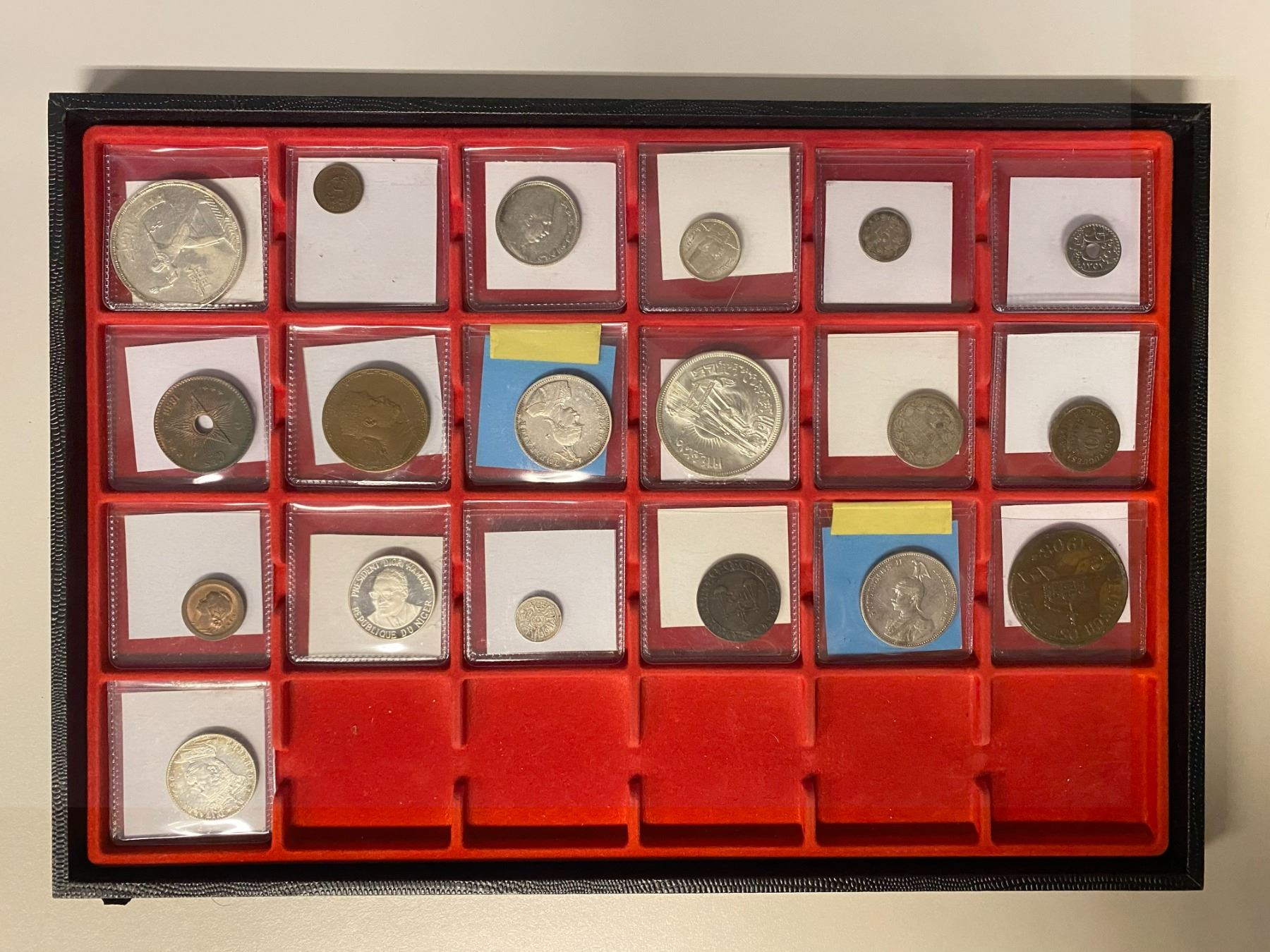 AFRICA: LOT of 19 coins, including 2 German East Africa rupees, 2 silver Egypt pounds, a proof Niger essai 500 francs, an Eritrea 1890 2 lire, and 13 others; retail value $400, lot of 29 pieces.
