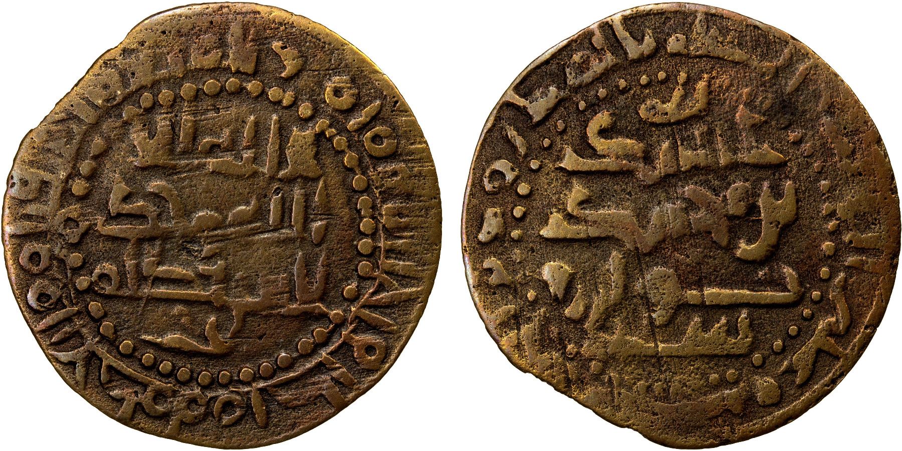 AFRIGHID OF KATH: Muhammad b. Ahmad, 977-995, AE fals (2.00g), Khwarizm, ND, A-R1478, cf, Zeno-120626, excellent example, with almost complete marginal legends, which are standard verses from the Qur'an, VF, RRR.