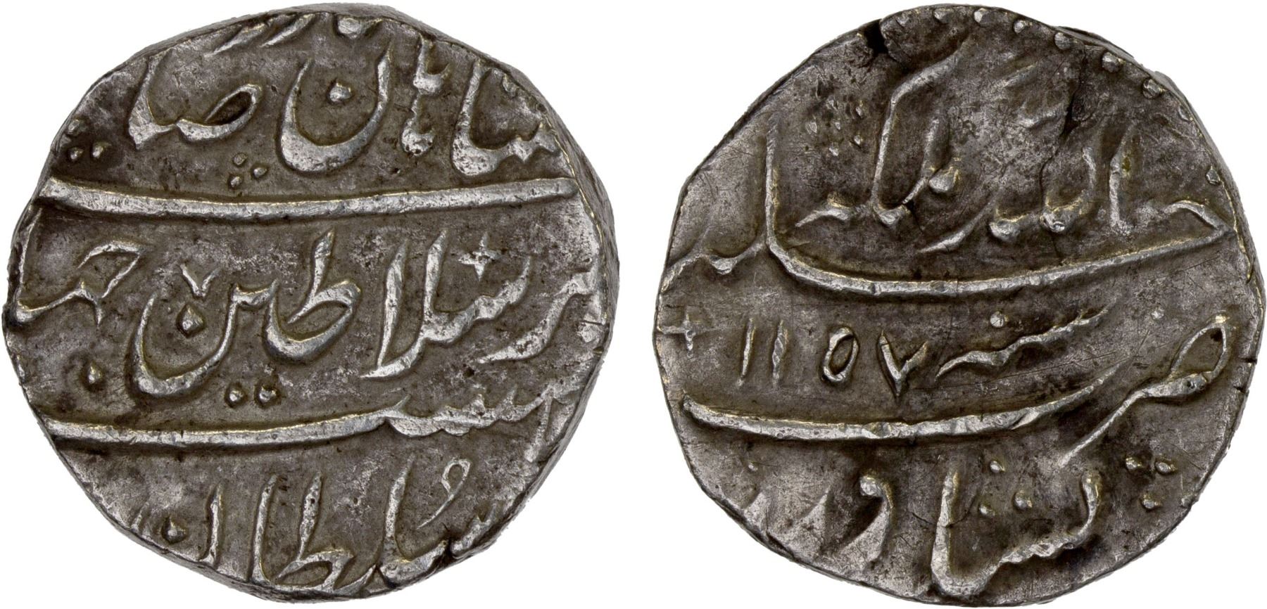 AFSHARID: Nadir Shah, 1735-1747, AR rupi (11.36g), Peshawar, AH1157, A-2744.2, some light scratches on reverse and rim, no testmarks, XF.