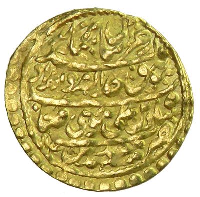 AFSHARID: Nadir Shah, viceroy, 1729-1735, AV ashrafi (3.40g), Mashhad, AH1148, A-2735, gold coinage of Nadir Shah is much rarer than his post-coronation issues that commenced in the same year, AH1148, VF, RR, ex. Richard Accola collection. This type is actually anonymous, its legend meaning "By the grace of God, coinage in gold in Khorasan became the succor and support for the King of the Religion, 'Ali b. Musa Reza." In exchange for assisting the Safavid king Tahmasp II in reconquering Isfahan in AH1142, Nadir was pronounced viceroy in Khorasan and allowed to strike anonymous coinage. Earlier literature incorrectly assigned these coins to Tahmasp II (for pieces dated 1142-1144) and 'Abbas III (1145-1148).