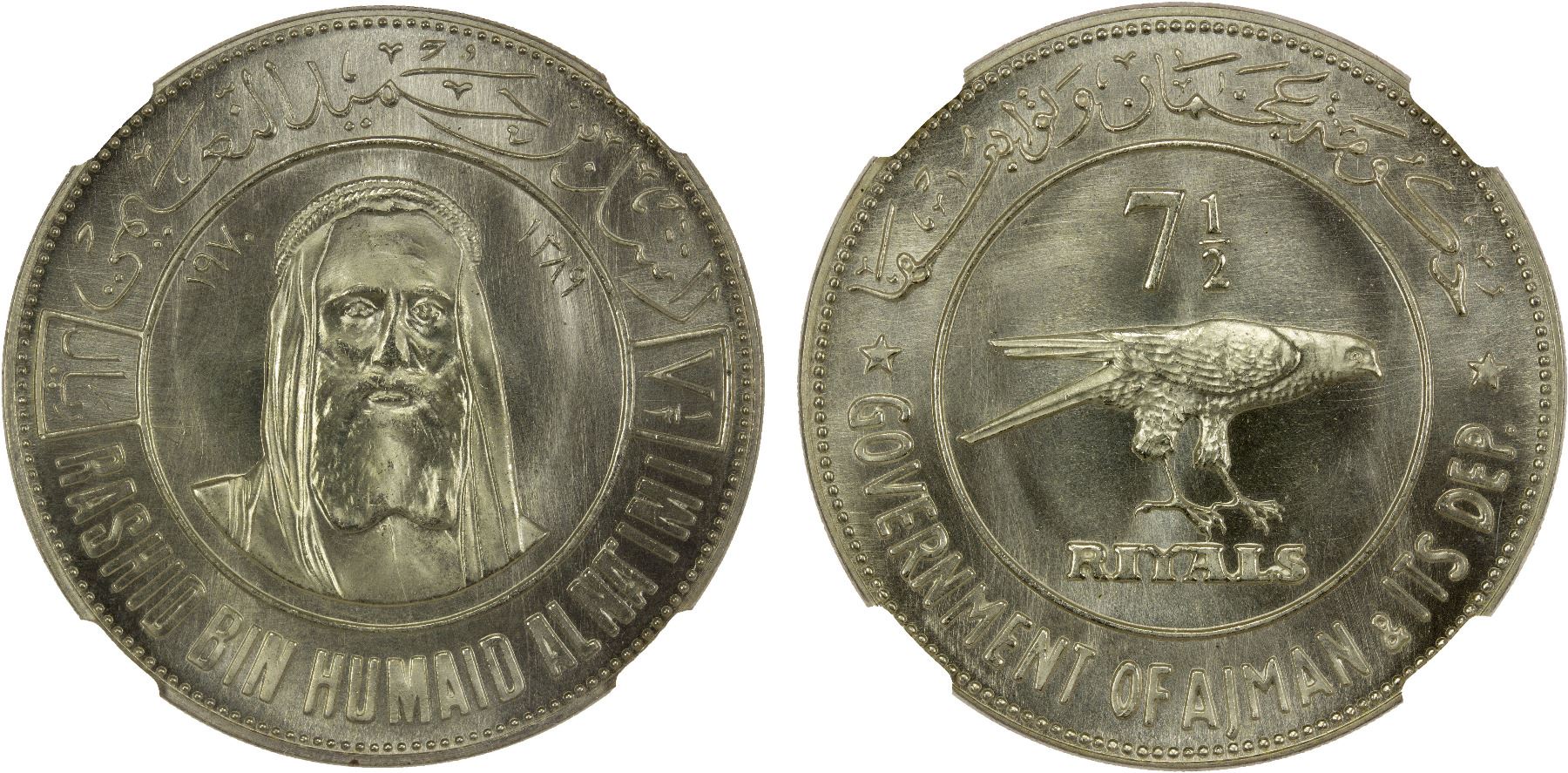 AJMAN: Rashid Bin Hamad al-Naimi, 1928-1981, AR 7½ riyals, 1970/AH1389, NGC MS66