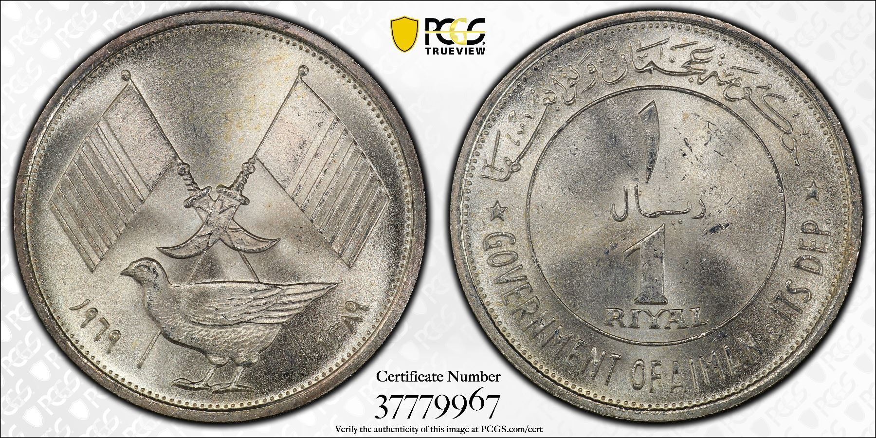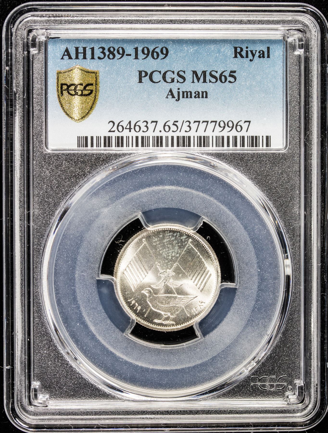 AJMAN: Rashid Bin Hamad al-Naimi, 1928-1981, AR riyal, 1969/AH1389, KM-1.1, PCGS graded MS65.