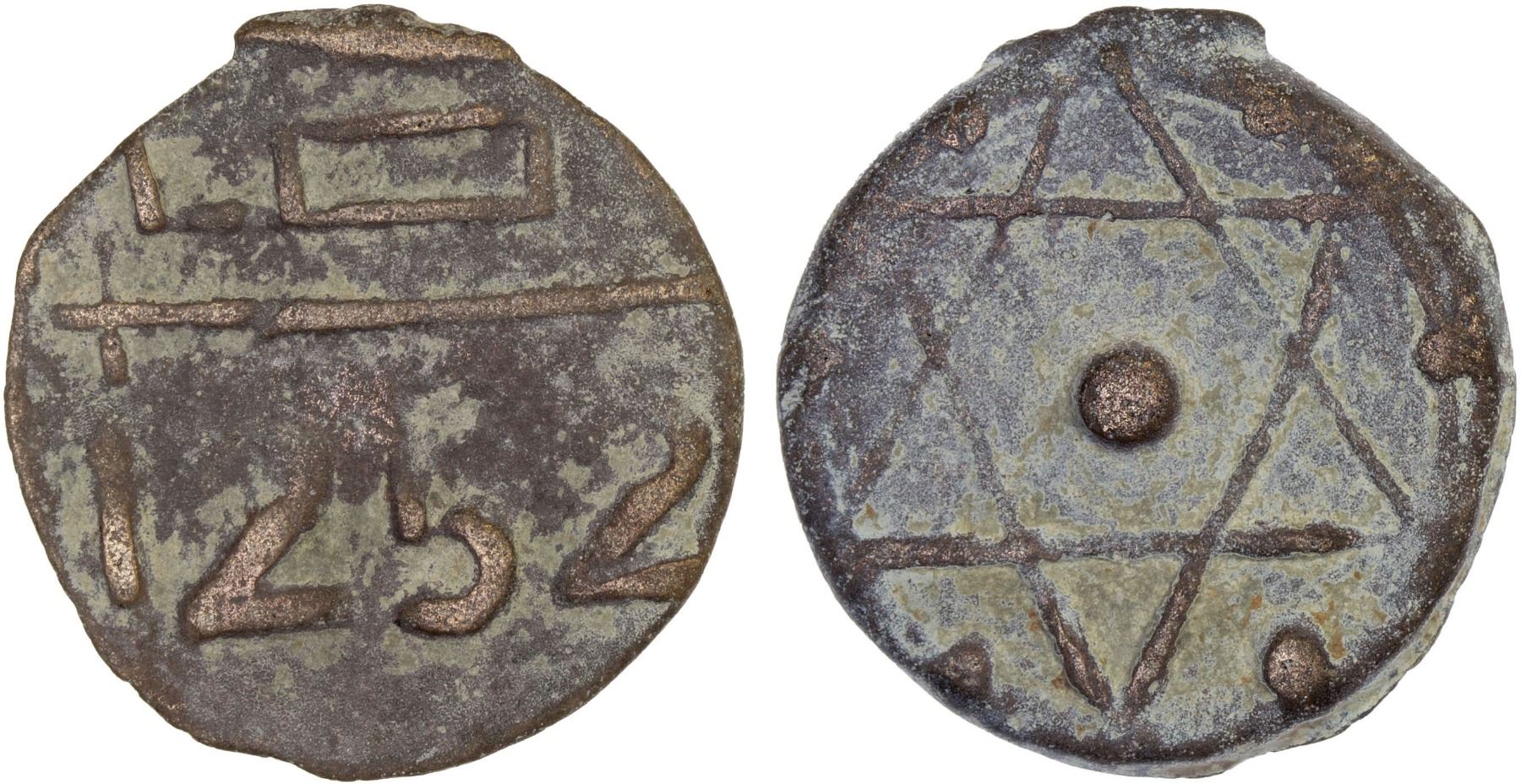 ALAWI SHARIF: 'Abd al-Rahman, 1822-1859, AE fals (4.11g), [Titwan], AH1252, A-643, second weight standard, used AH1250-1269, with stylized mint name now assigned to Titwan, bold VF.