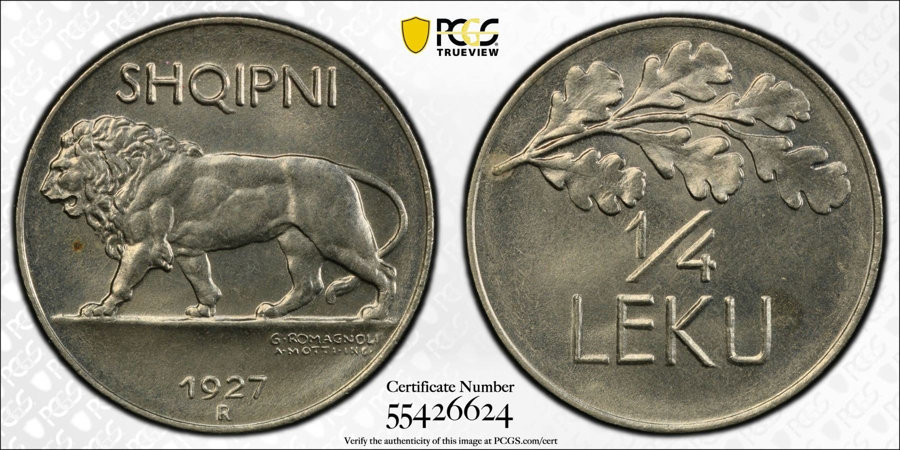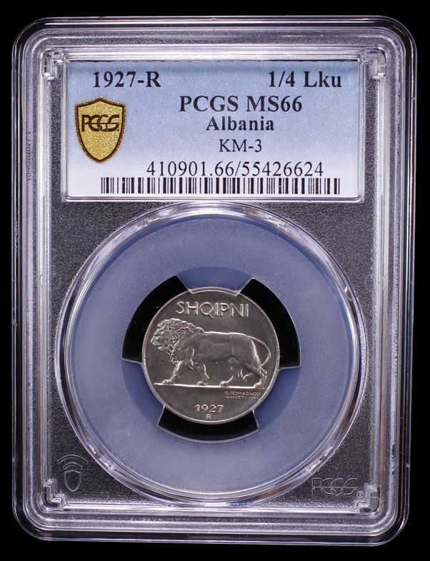 ALBANIA: Zog I, 1928-1939, 1/4 lek, 1927-R, PCGS MS66