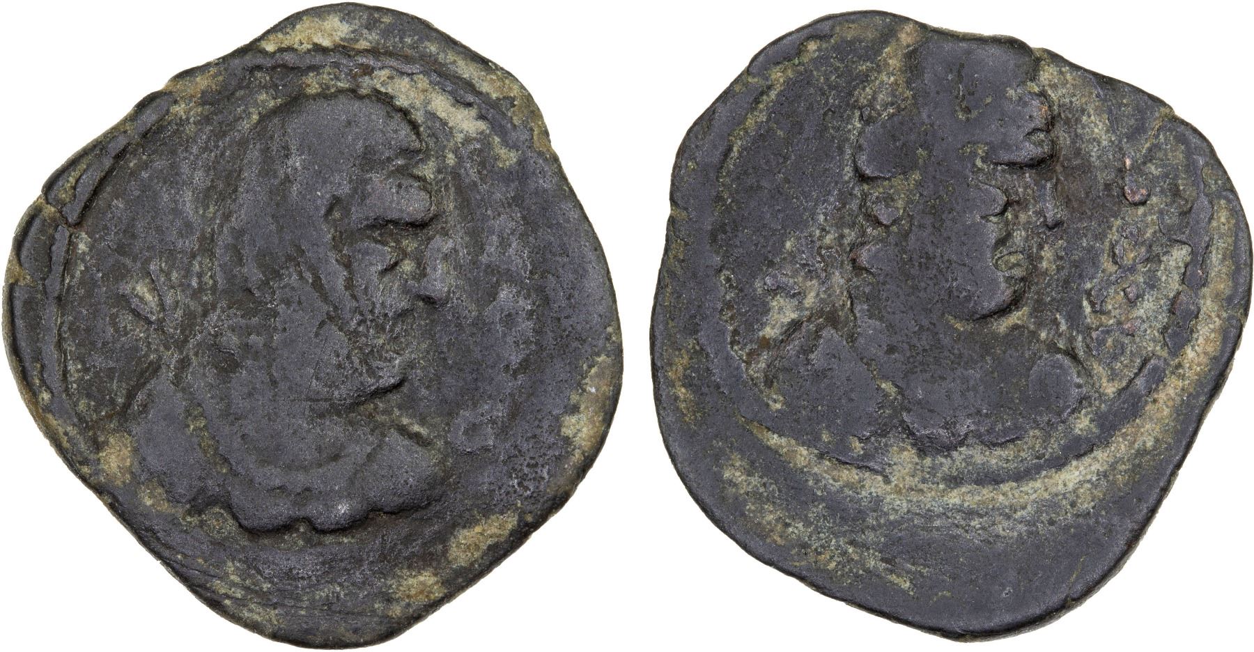ALCHON HUNS: Khingila, ca. 440-490, AE unit (0.83g), G-45, bust right, trace of legend alxon to right // similar bust, no legend, strong F-VF, RR.