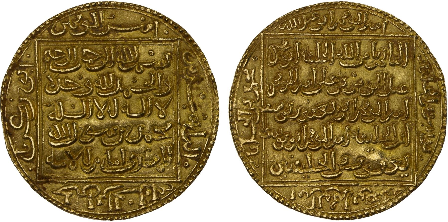 ALMOHAD: Abu Zakariya' Yahya, 1227-1236, AV dinar (4.63g), NM, A-488, H-512, citing the ruler in the obverse margin; excellent strike, superb XF, RRR. In rebellion against Abu'l-'Ula Idris until 629, then opposed by Abu Muhammad 'Abd al-Wahid II 630-633. Only two examples cited on CoinArchives.