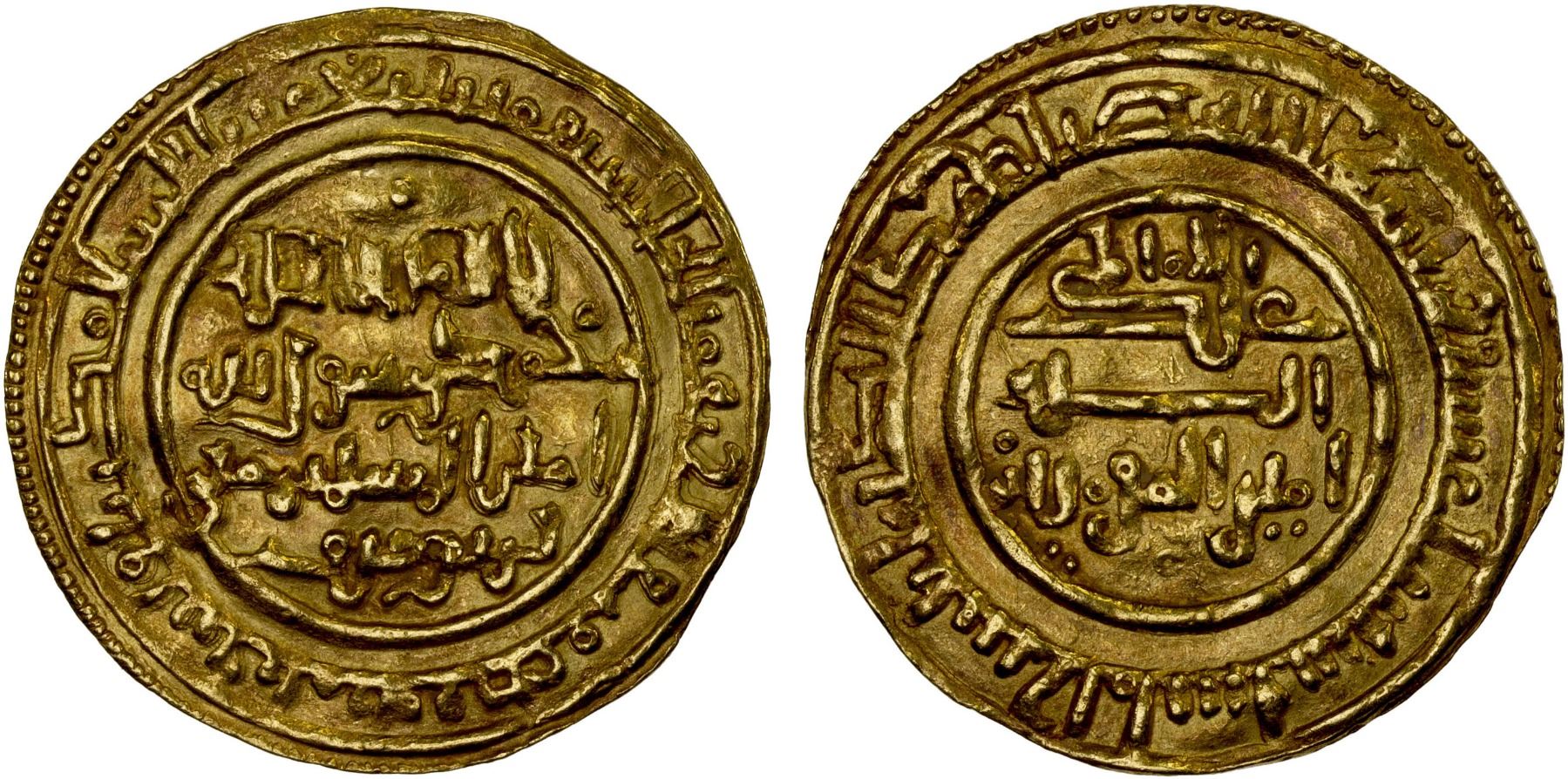 ALMORAVID: 'Ali, 1106-1142, AV dinar (4.10g), Sijilmasa, AH516, A-466.1, Hazard (same type as AH518, Haz-180, without heir, unusual obverse legend arrangement used only at Sijilmasa from AH499 (sic) to 521, bold VF, RR.