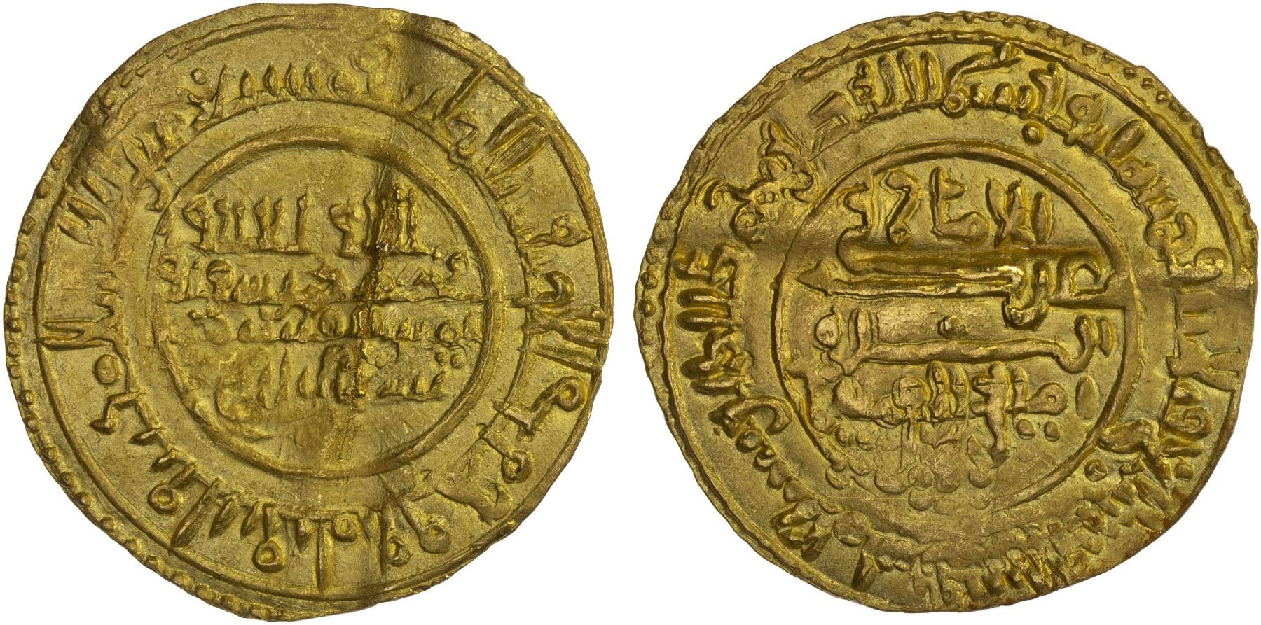 ALMORAVID: Tashufin b. 'Ali, 1142-1145, AV dinar (3.44g), Sijilmasa, AH534 (sic), A-471.1, H-, despite the date, this is surely another posthumous issue, presumably struck by order of straggling local authorities still loyal to the defeated Almoravids; creased, but decent quality, and appeared to be unpublished and probably unique, XF, RRRR. The same type, dated 544, has been reported by Hazard, his #407, and there is also 543 (sold in our Auction 40, lot 310).