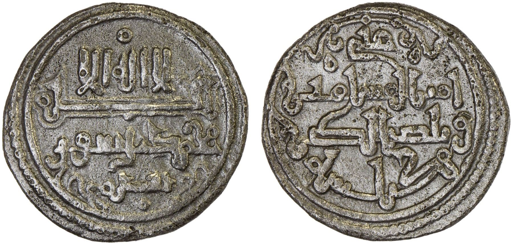 ALMORAVID: Yusuf, 1087-1106, AR qirat (0.89g), NM, A-465.1, H-893-var, 2-line legends both sides (kalima // al-amir yusuf / ibn tashufin), with decorative symbols above & below, finest on the reverse, virtually Unc, R.