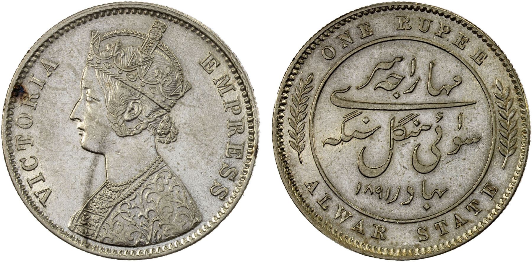 ALWAR: Victoria, as Empress, 1877-1901, AR rupee, 1891, XF