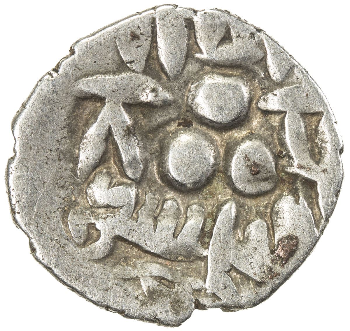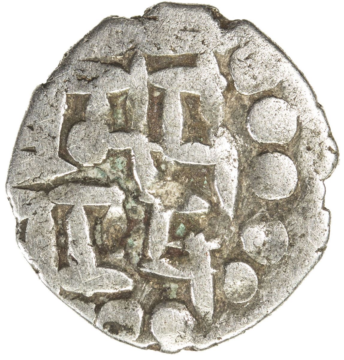 AMIRS OF MULTAN: Asad, fl. 305, AR damma (0.46g), NM, ND, A-1504, 3-line Nagari text // obverse type A with Nagari "Srimad / Varaha", name lillah asad below the triplet of pellets on the reverse, Nagari text in upper area, VF, RR, ex M.H. Mirza Collection