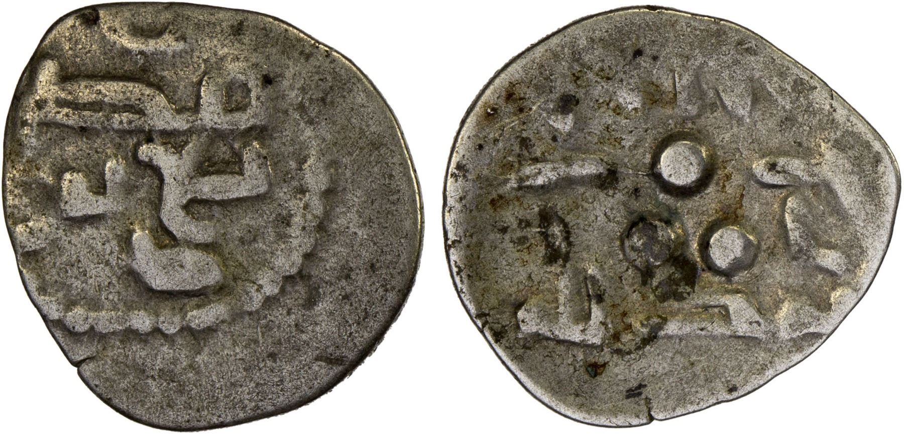 AMIRS OF MULTAN: Muhammad I, ca. 720s-750s, AR damma (0.57g), A-4570, FT-M31, 4-line Arabic text lillah / fanasr / fath ... / ... with the last 2 words still undeciphered, and standard reverse, with muhammad / lillah below, VF, R.