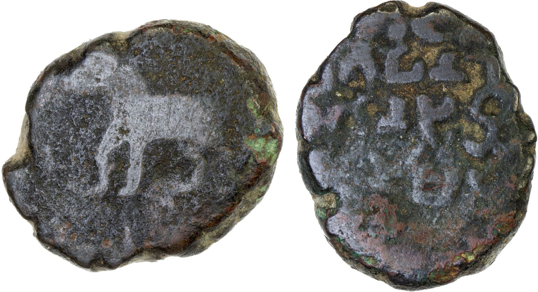 ANCIENT INDIA: Hagamasha & Hagana, 1st century AD, AE unit (5.52g), Pieper-1287, parts of the Brahmi legend khatapana haganasa hagamasasa // horse left, VG, RRR.