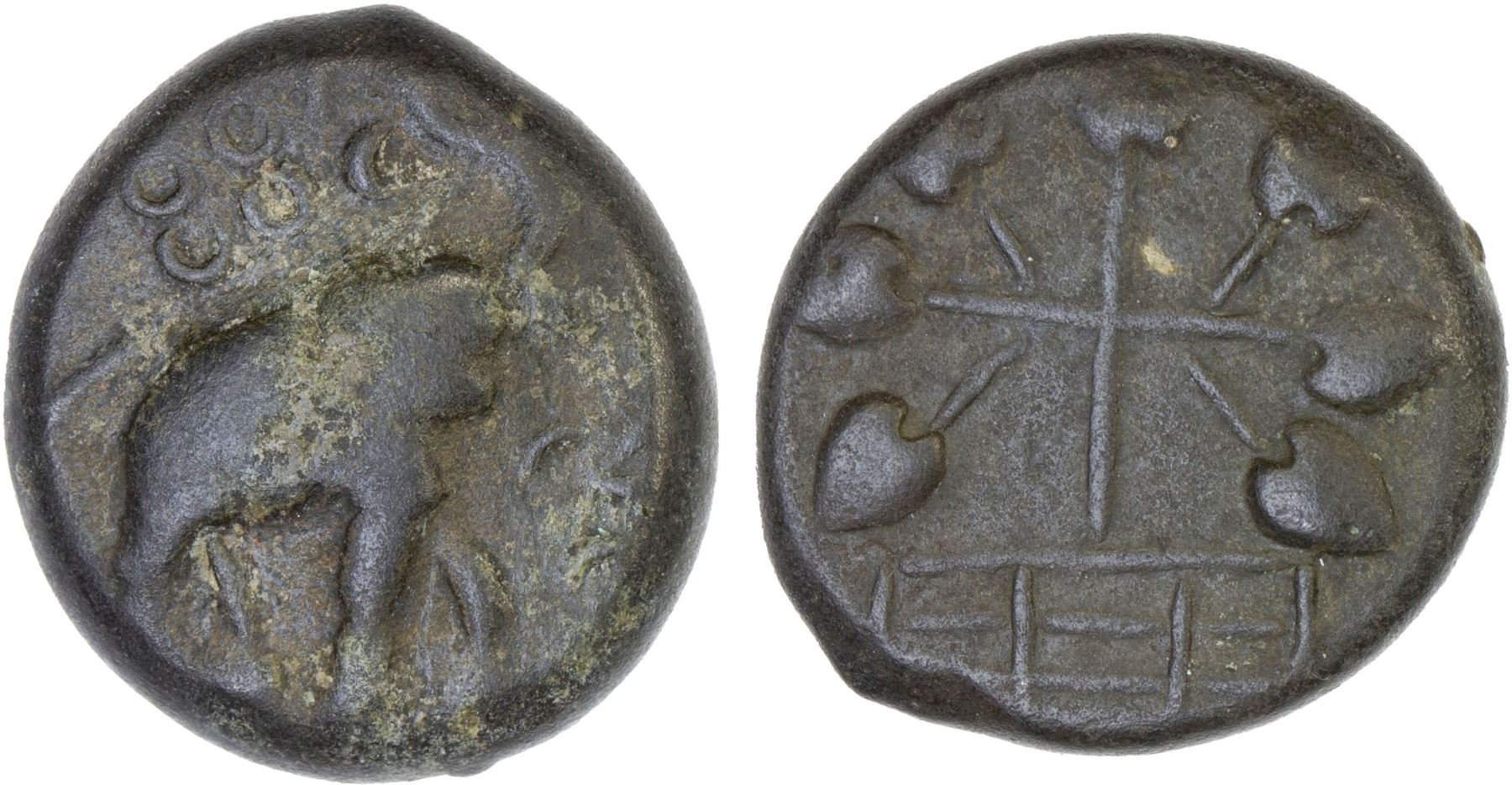 SATAVAHANA: Sri Chhimuka, ca. 115-100 BC, lead unit (7.37g), Pieper-2610, elephant right with trunk raised, Ujjain symbol above // tree in railing; assigned to the region of Paithan, choice VF, RR.