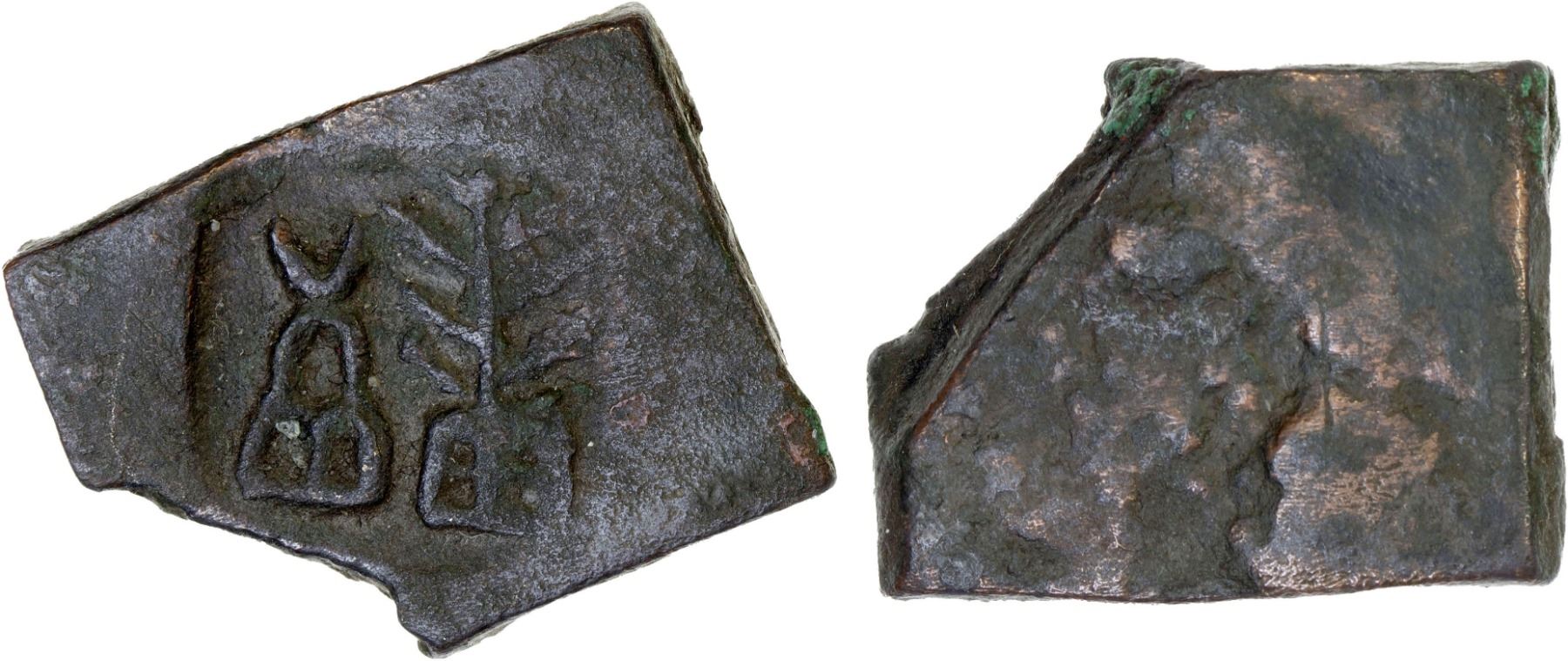 TAXILA: Anonymous, 2nd century BC, AE rectangular unit (11.18g), Pieper-1438, hill & railed tree, blank reverse, VF-XF, R.