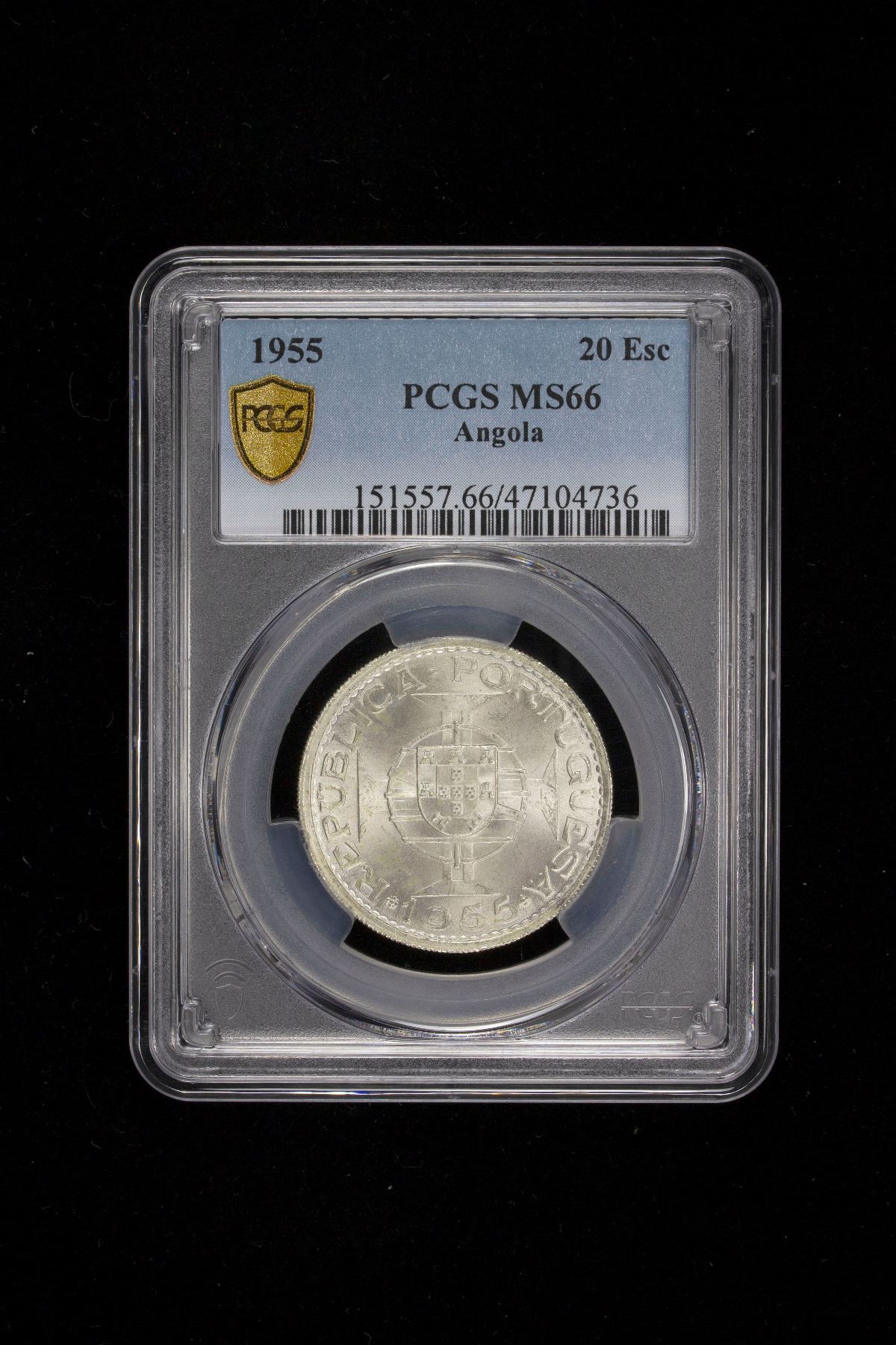 ANGOLA: Portuguese Colony, AR 20 escudos, 1955, KM-74, a fantastic example, PCGS graded MS66.