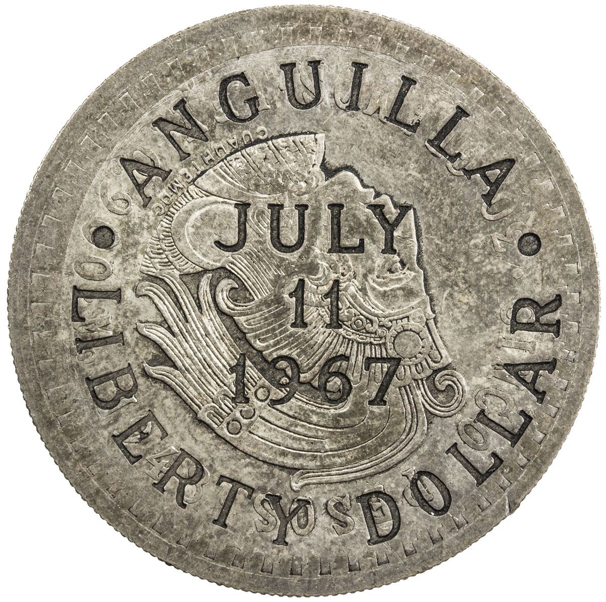 ANGUILLA: AR liberty dollar, 11 July 1967, KM-X2, countermarked on Mexico 5 pesos, 1948, type KM-465, on EF host, ex Hans Mondorf Collection.