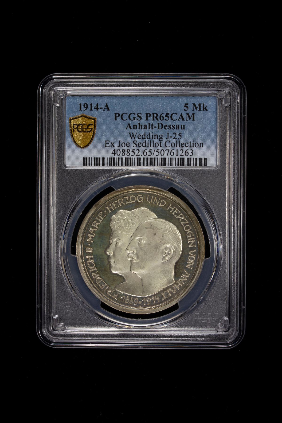 ANHALT-DESSAU: Friedrich II, 1901-1918, AR 5 mark, 1914-A, KM-31, J-25, a superb proof example! PCGS graded Proof 65 CAM, ex Joe Sedillot Collection.