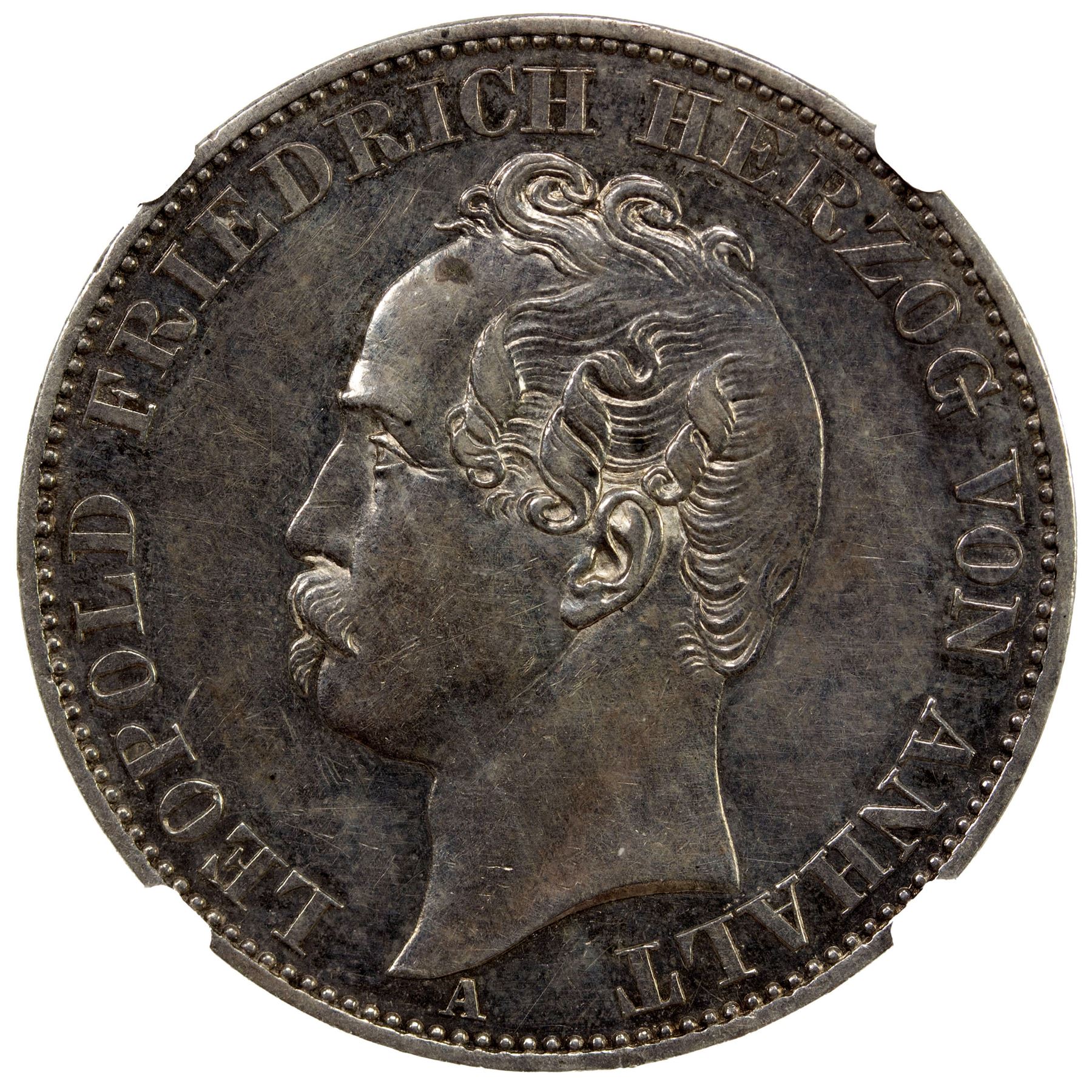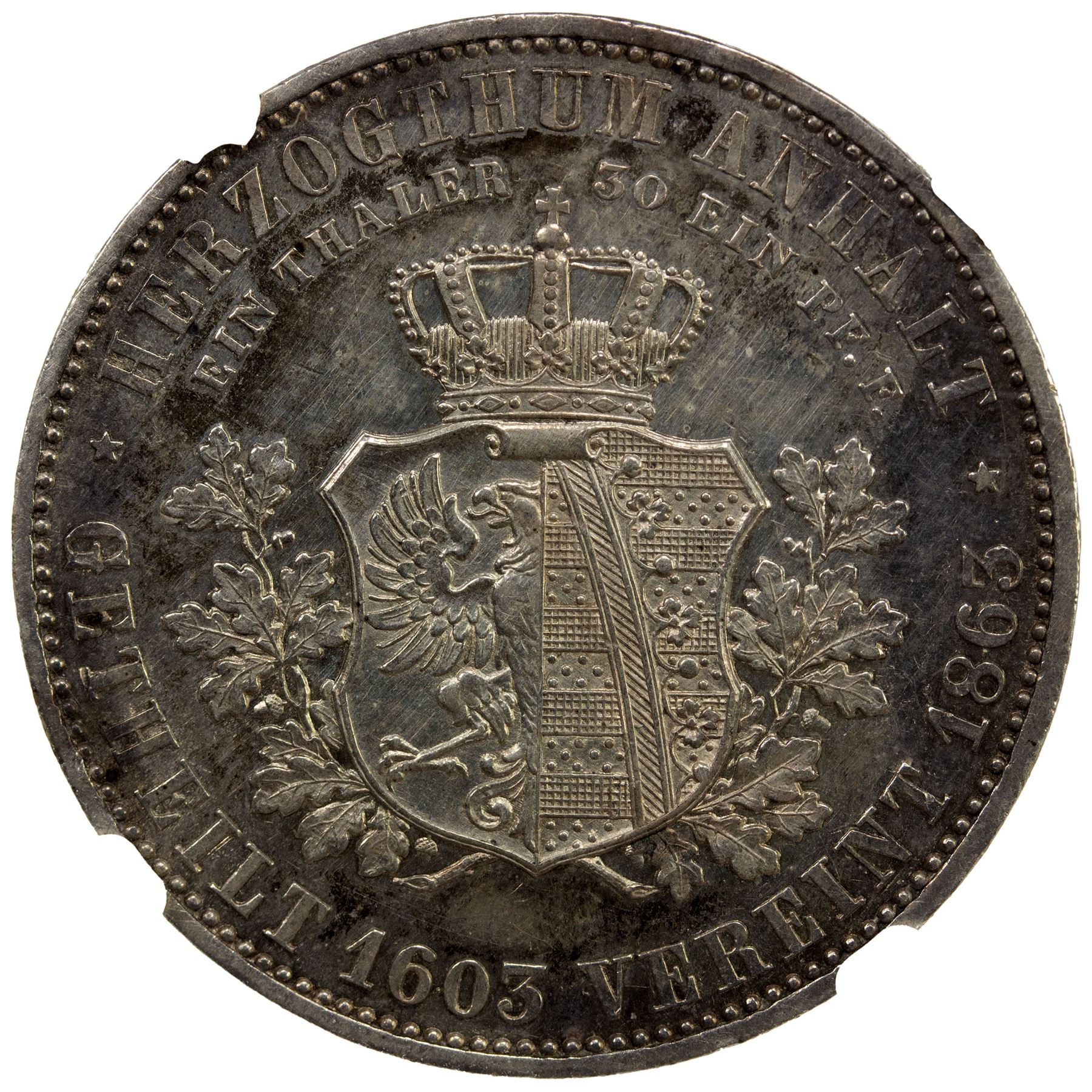 ANHALT-DESSAU: Leopold IV Frederick, 1817-1871, AR thaler, 1863-A, NGC UNC details