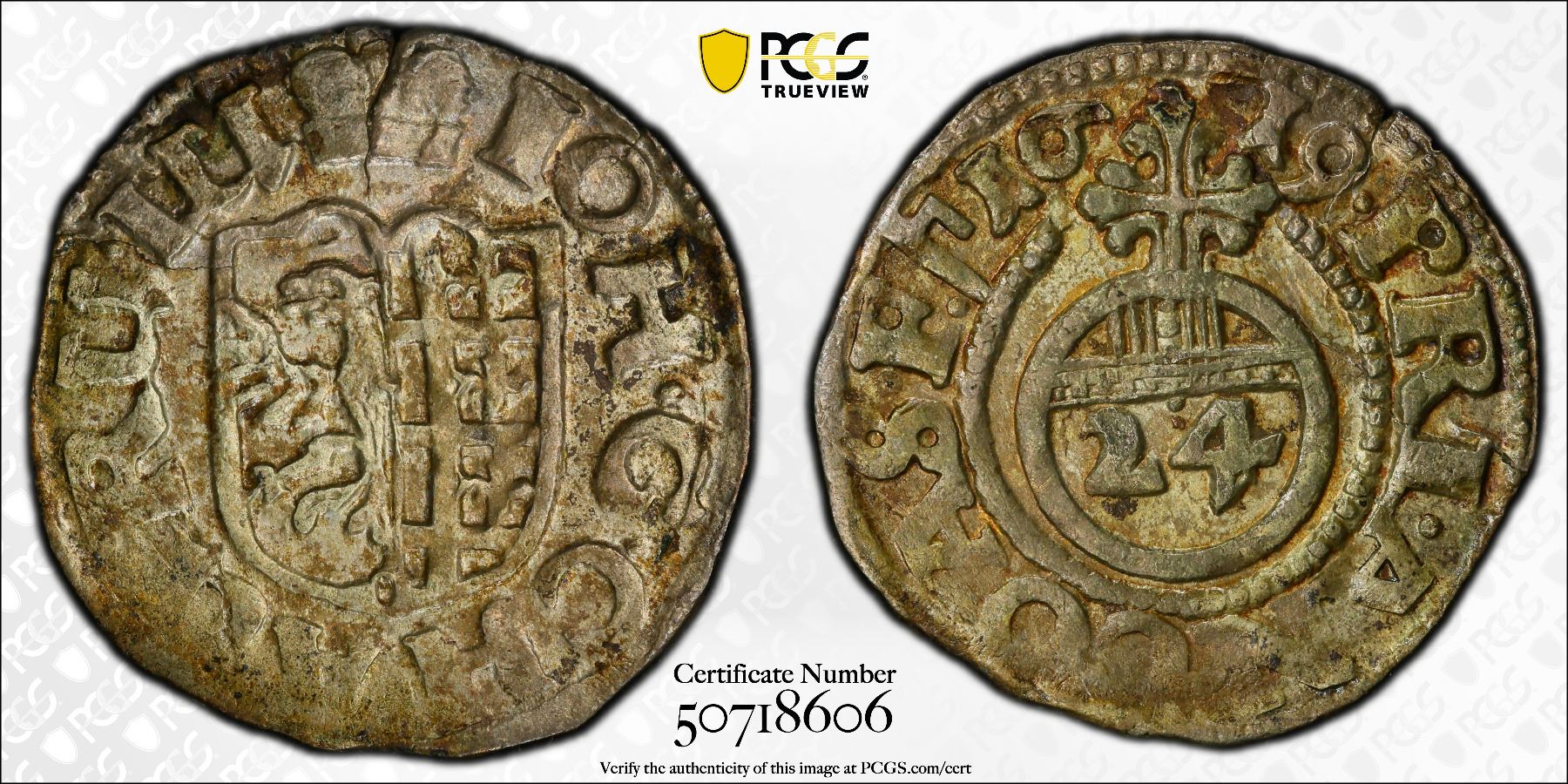 ANHALT: John Casimir, 1618-1660, AR 1/24 thaler (groschen), 1619, PCGS AU55