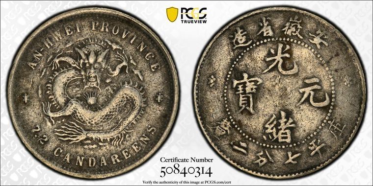 ANHWEI: Kuang Hsu, 1875-1908, AR 10 cents, ND (1897), PCGS VF25