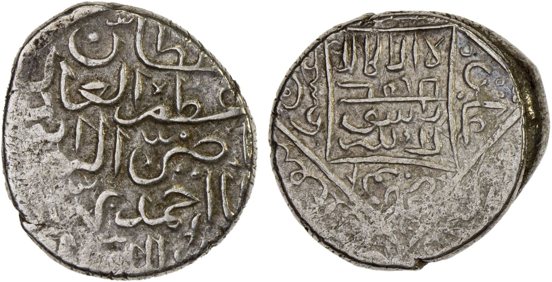 AQ QOYUNLU: Ahmad Göde, 1497-1498, AR tanka (4.64g), MM, DM, A-2537, with the ruler's title al-sultan al-a'zam al-'adil al-qadi abu'l-nasr // square within diamond, additional religious legend in the margin, possibly unpublished, VF, RR.