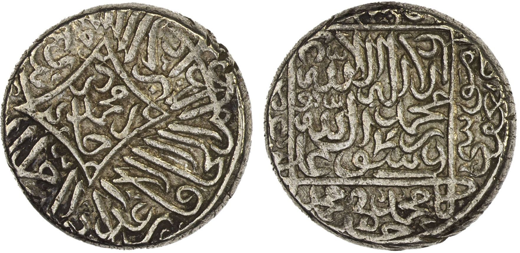 AQ QOYUNLU: Muhammad, 1498-1500, AR heavy tanka (5.44g), Yazd, AH904, A-U2542.2, bipartisan Sunni & Shi'ite type, citing the first 3 Sunni and 8 of the Shi'ite Imams in the reverse margins, the four Shi'ite Imams names 'Ali arranged in the corners of the reverse field (the first Shi'ite Ali was also the 4th Sunni Imam); bold strike, XF, RR. U2542 and V2542 are the first known bipartisan religious types of the Aq Qoyunlu.
