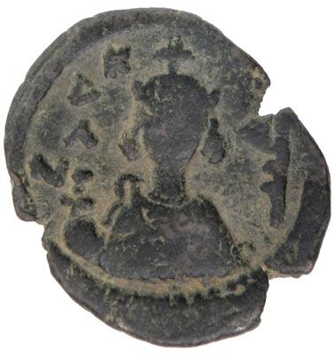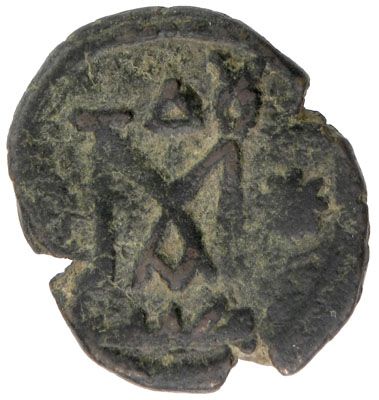 ARAB-BYZANTINE: Imperial Bust, ca. 670s-680s, AE fals (6.24g), Antardos (Tartus), A-3525A, Foss-80, Bone-1.2, Greek KA?ON to left, Arabic tayyib right / capital M, ? above & officina A below, 8-point star right, tayyib below, VF, RRR. The capital M, the officina A, the T and O attached to the top of the M, and the ? form the monogram for the city name Antardos (sic). The type was unknown to Walker.