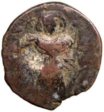 ARAB-BYZANTINE: Standing Emperor Type, ca. 680s-700s, AE fals (4.19g), Pseudo-Damascus