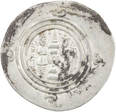 ARAB-SASANIAN: 'Abd Allah b. 'Amir, ca. 661-664, AR dirham (3.46g), DA (Darabjird), AH43, A-7, without the governor's patronymic, some light adhesions in the margins, VF, R.