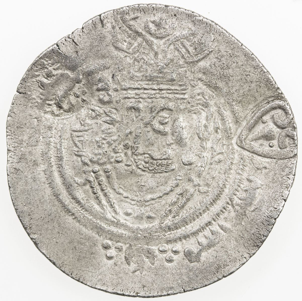 ARAB-SASANIAN: Salm. b. Ziyad, ca. 680-685, AR drachm (3.17g), NM, ND, A-18, light standard, style of the Hunnic imitations, with two countermarks on the obverse, Göbl-#11 and #90, VF, RR.