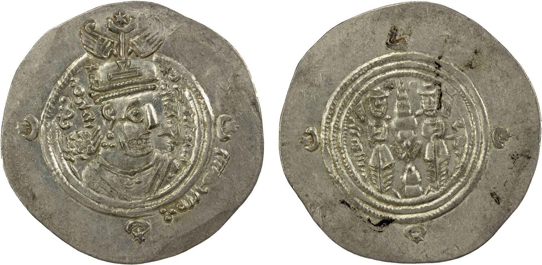 ARAB-SASANIAN: 'Ubayd Allah b. Ziyad, 673-683, AR drachm (4.04g), KLMAN (Kirman), AH58, A-12, as Malek-625 but without the crescent above the ruler's left shoulder, choice EF.