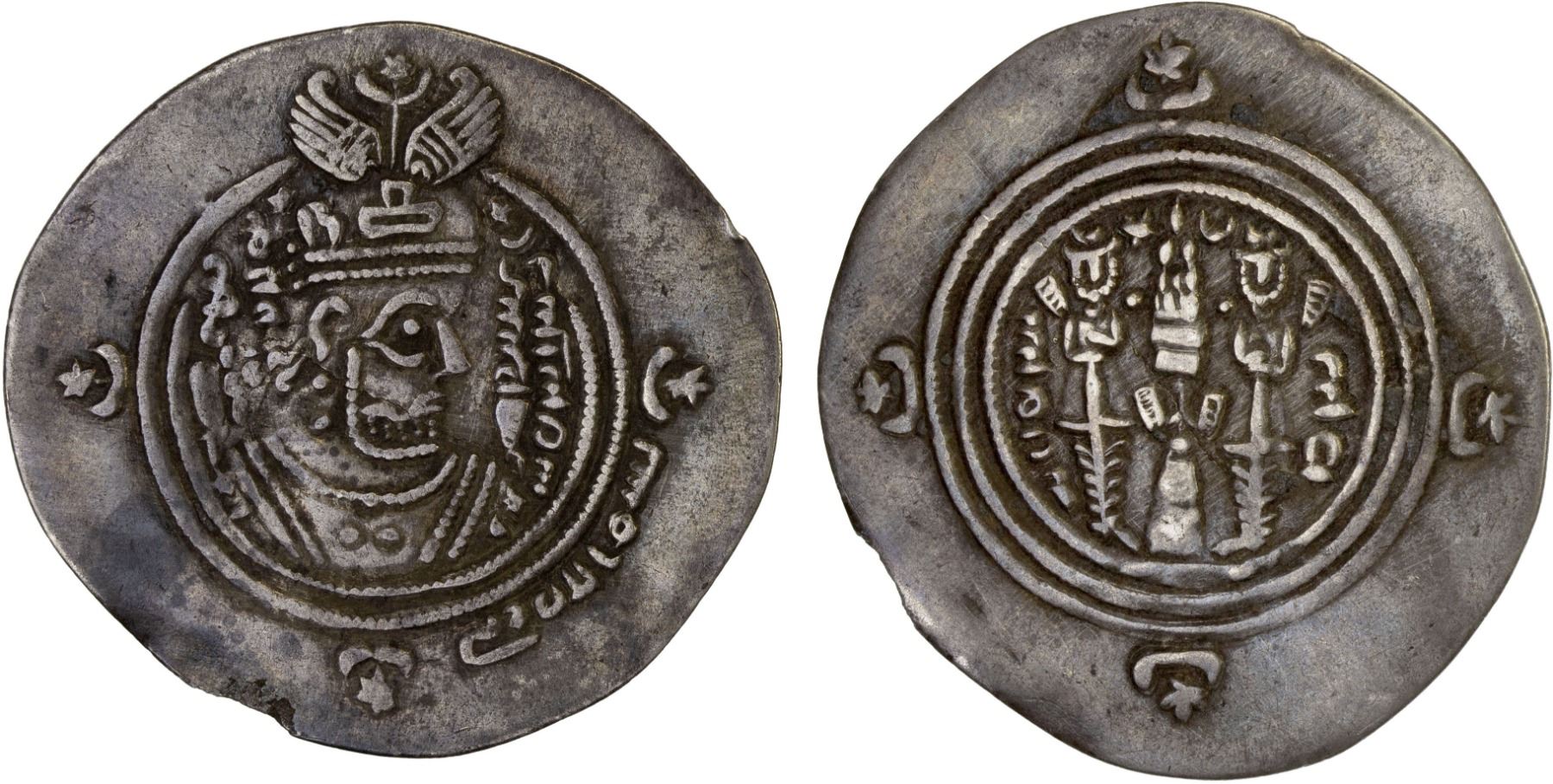 ARAB-SASANIAN: Ziyad b. Abi Sufyan, 665-673, AR dirham (3.77g), ART (Ardashir Khurra), AH51, A-8, Malek-53, scarce subtype, with bism Allah rabbi all within ObQ2, VF, R.