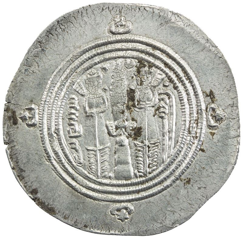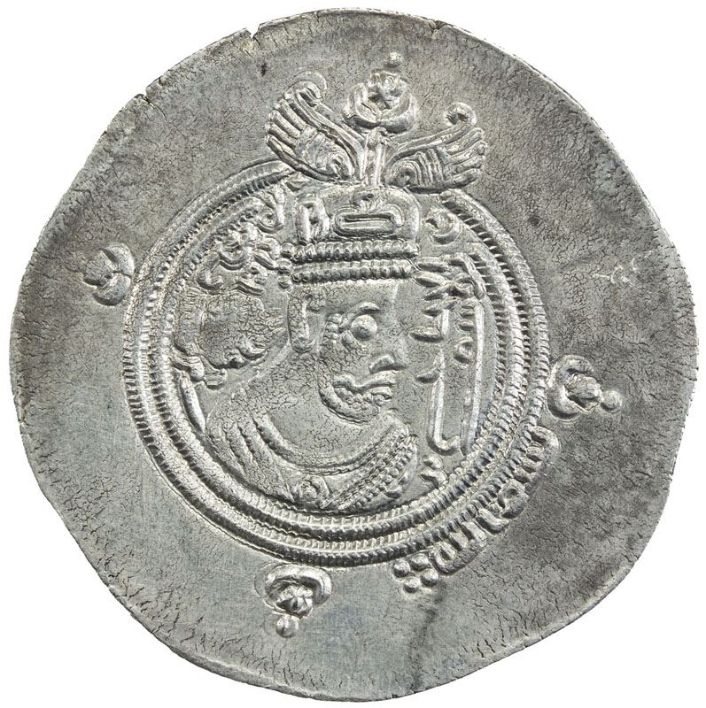 ARAB-SASANIAN: al-Hajjaj b. Yusuf, 694-713, AR drachm (3.80g), BYSh (Bishapur), AH80, A-35.2, just bism Allah in obverse margin, followed by group of 4 pellets, superb quality, bold EF.