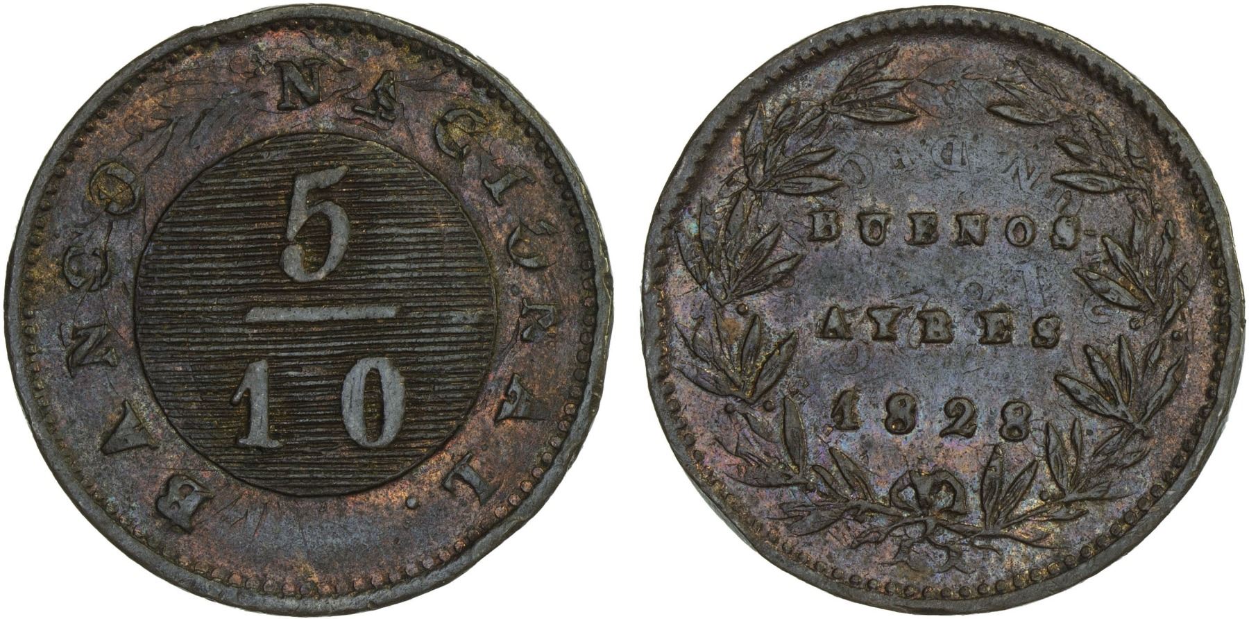 ARGENTINA: Buenos Aires, Province, AE 5/10 real, 1828, Choice XF